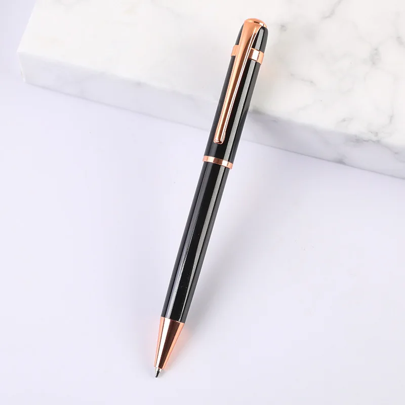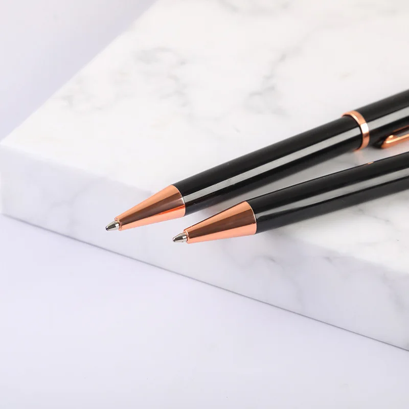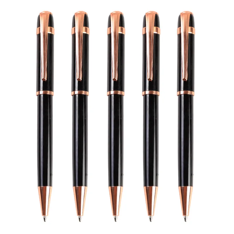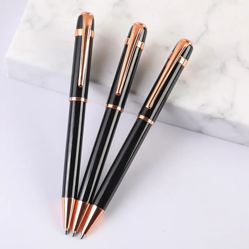 New Luxury Rose Gold Black Metal Ball Pen with Custom Logo Office Supplies High Quality Promotion Twist Metal Ballpoint Pen