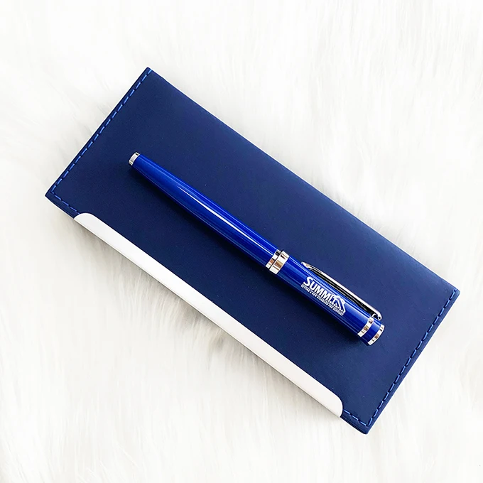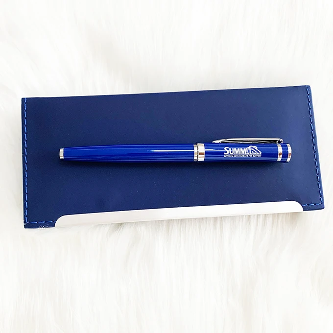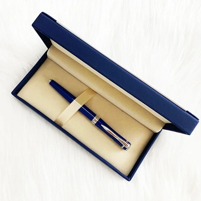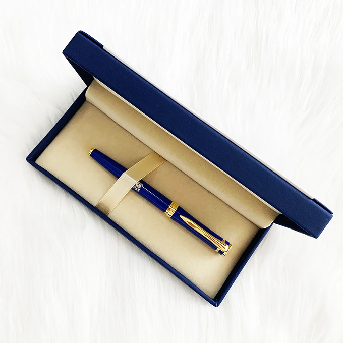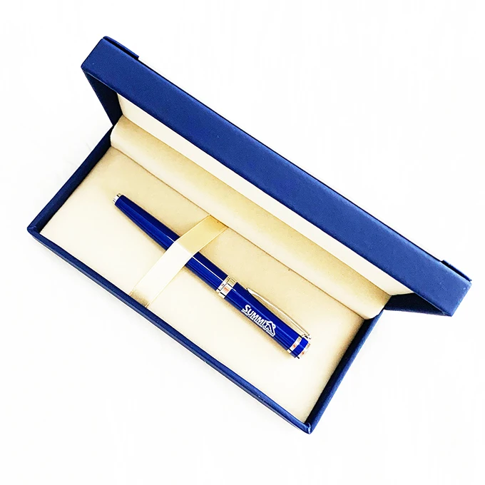 Wholesale Luxury Blue Metal Roller Pen With Custom Logo Business Gift Promotion Metal Roller Pen Set With PU Leather Box