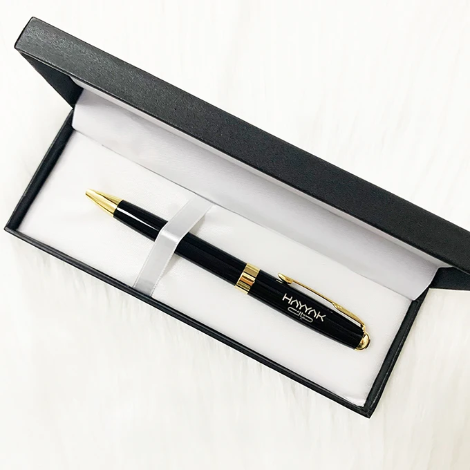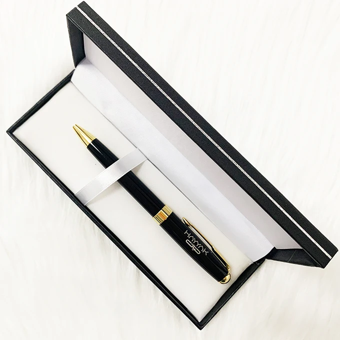 Hot Selling Luxury Black Classic Metal Ball Pen with Custom Logo Office Supplies Twist Metal Ballpoint Pen Set with Box