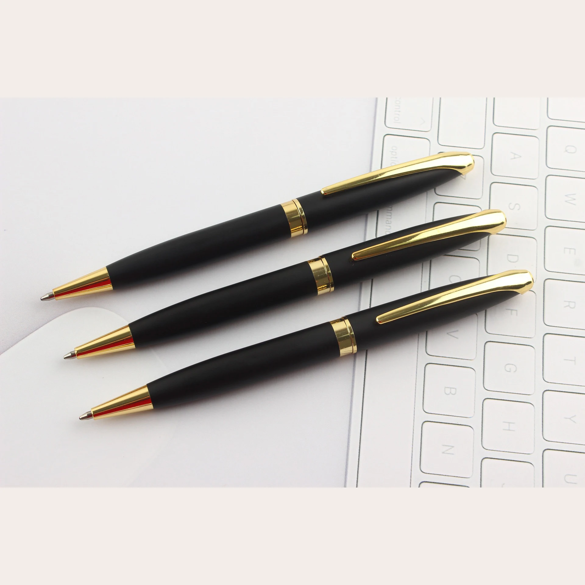 Manufacture Wholesales High Quality Luxury Twist Ballpoint Pen Custom Logo Premium Gift Matte Black Metal Ball Point Pen