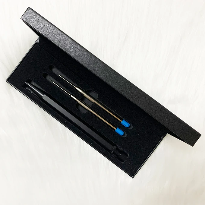 New Luxury Business Gift Black Metal Ball Pen With Custom Logo Promotion Novelty Click Metal Ballpoint Pen Set With Box