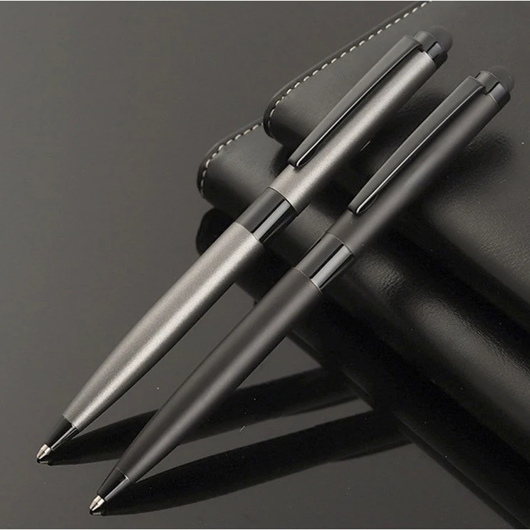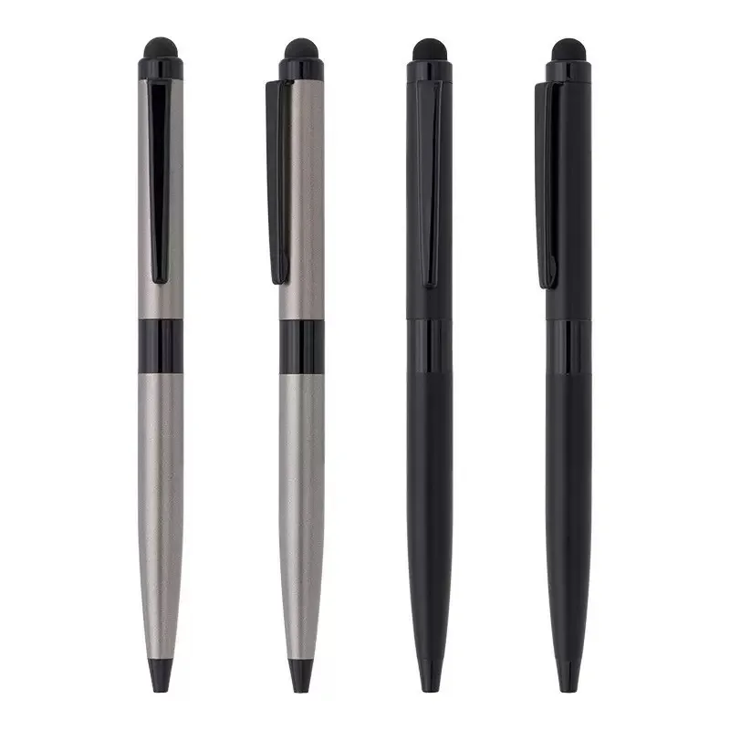 High Quality Luxury Office Stationery Twist Matte Black Customized Logo Metal Ball Pen Stylus Touch Screen Pen for Phone