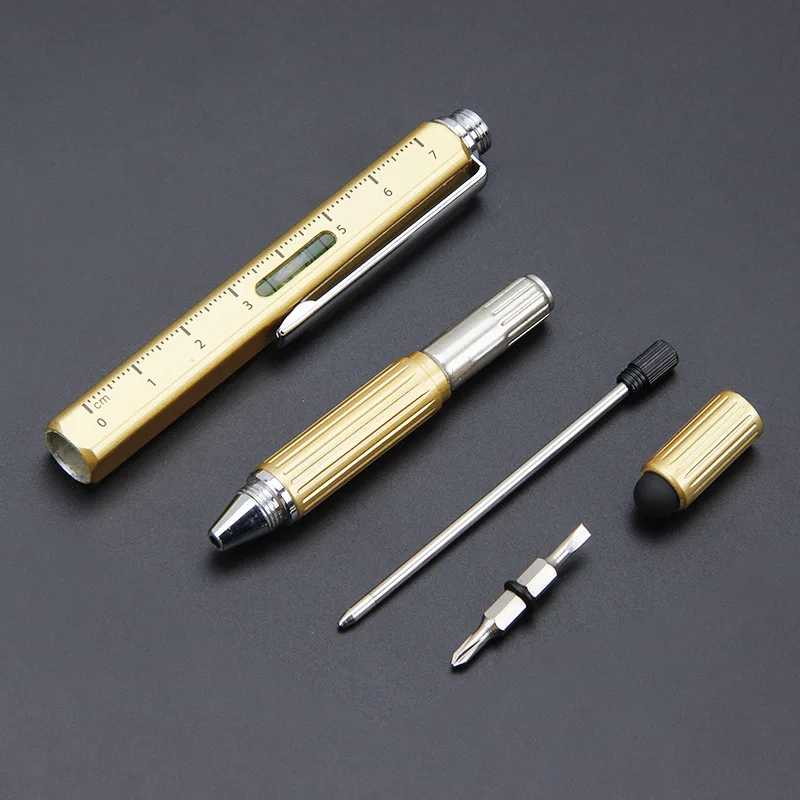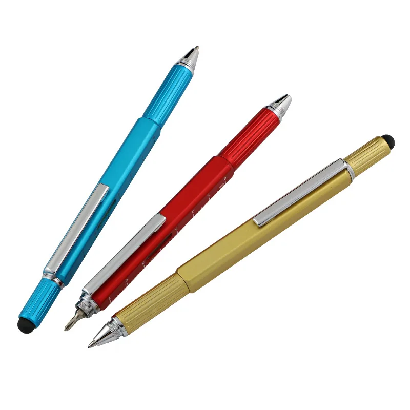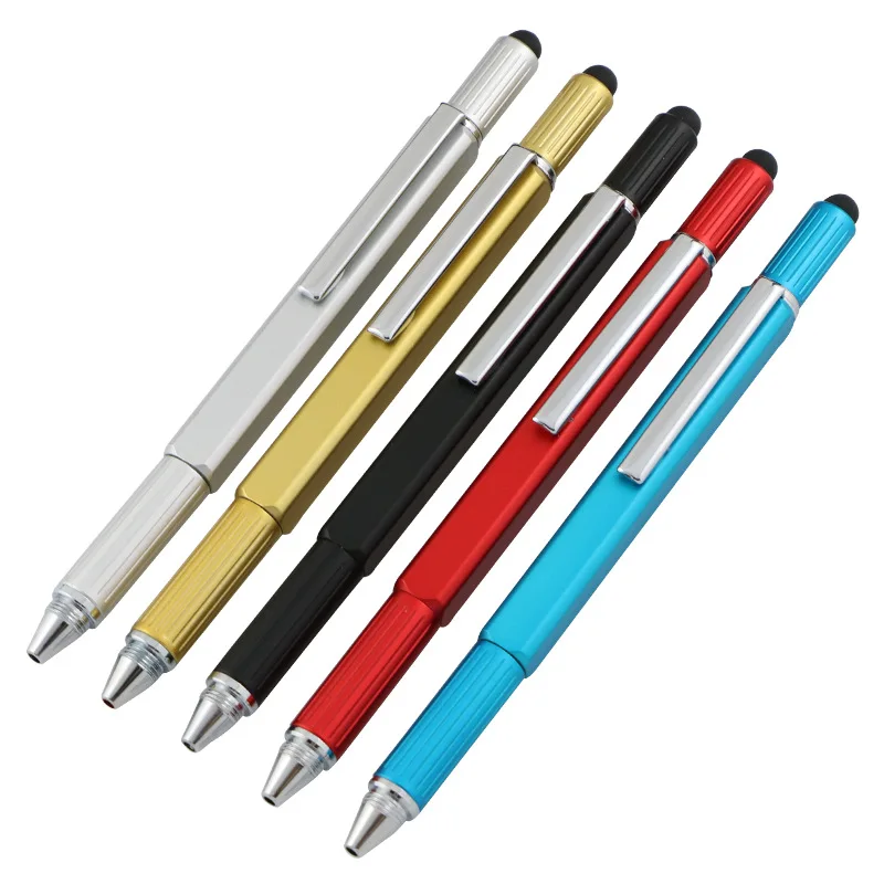 Hot Selling New 6 in 1 Multi-Function Metal Tool Pen With Custom Logo Square Metal Pen with Ruler Level Screwdriver Touch Screen