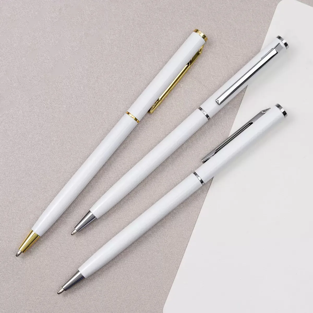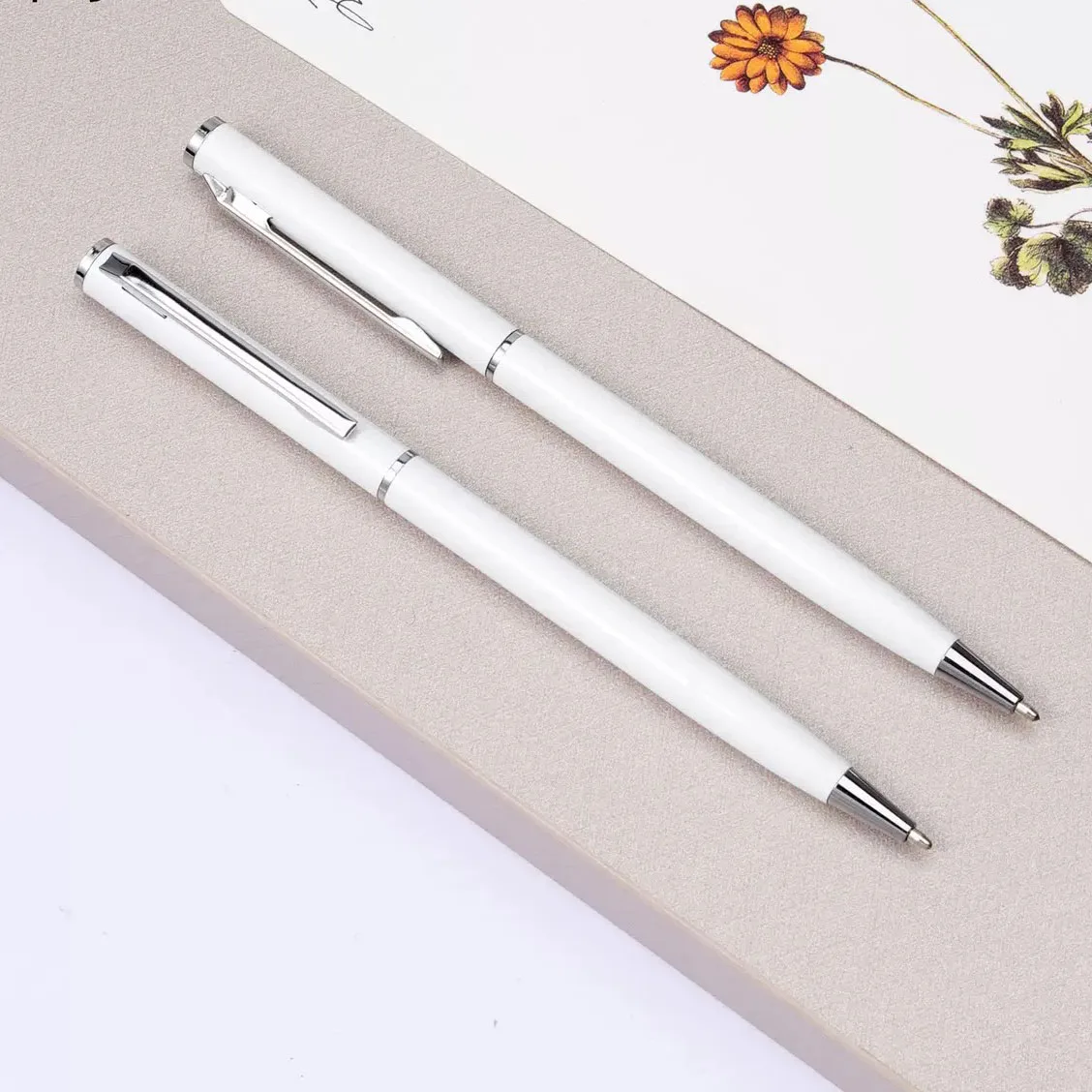 Elegant White Business Ballpoint Pen Hotel Company Promotion Gift Personalized Custom Logo High Quality Slim Thin Metal Ball Pen