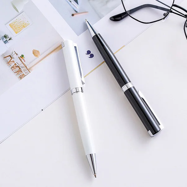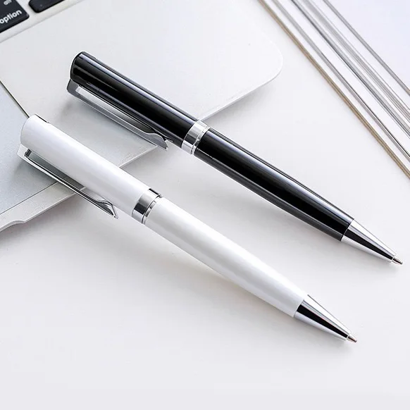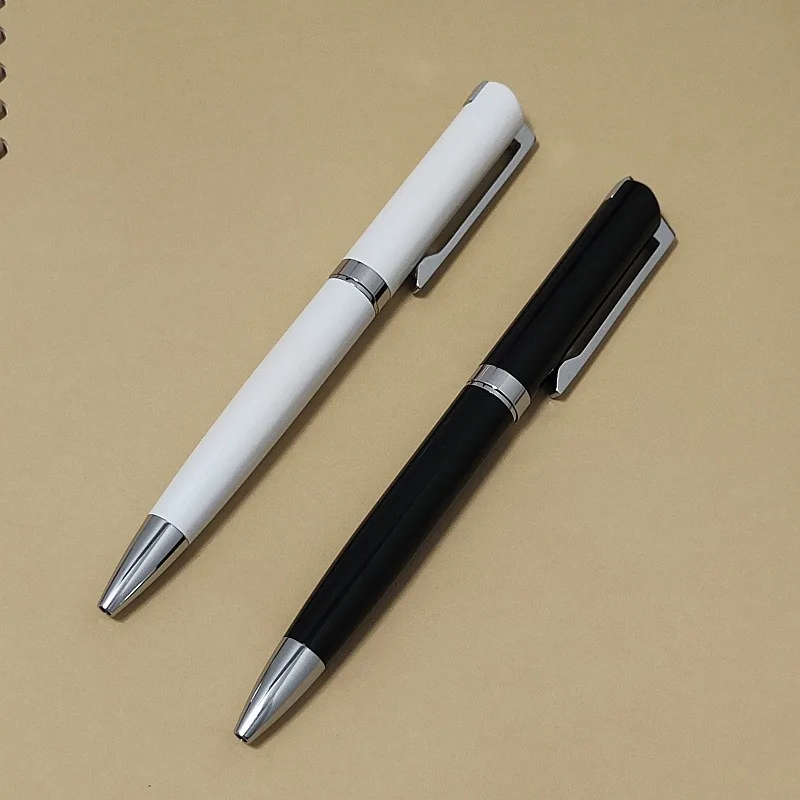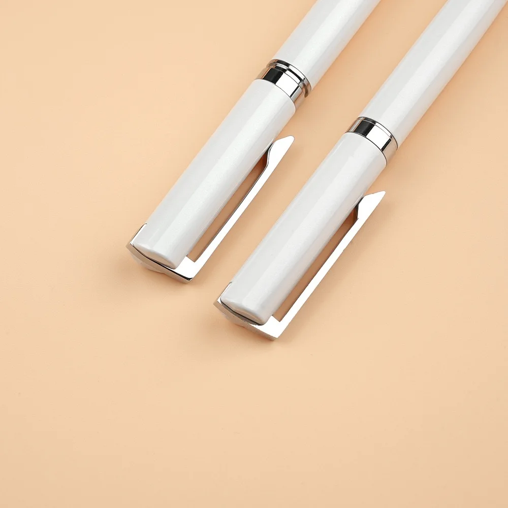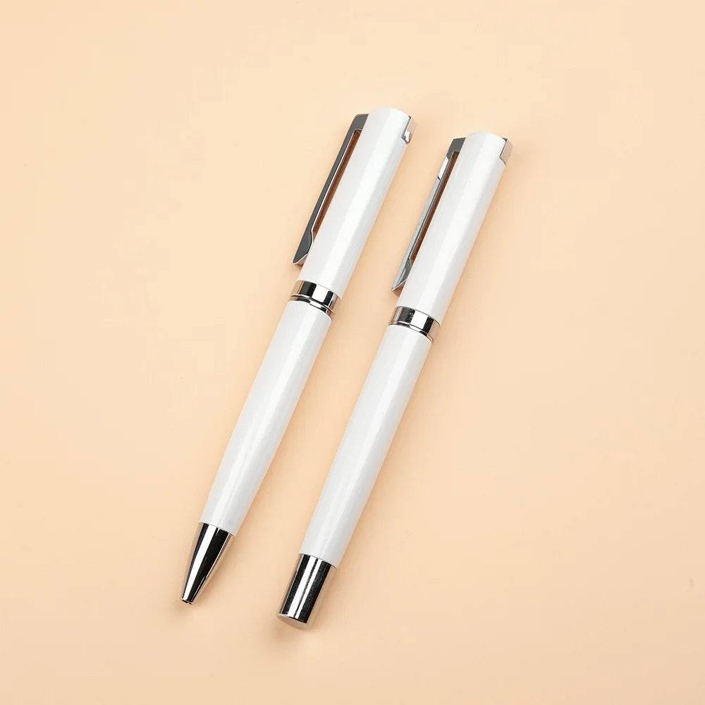 Elegant Graceful White Ballpoint Pen Unique Clip Design Twist Custom Logo University Company Writing Biro Personalized Metal Pen