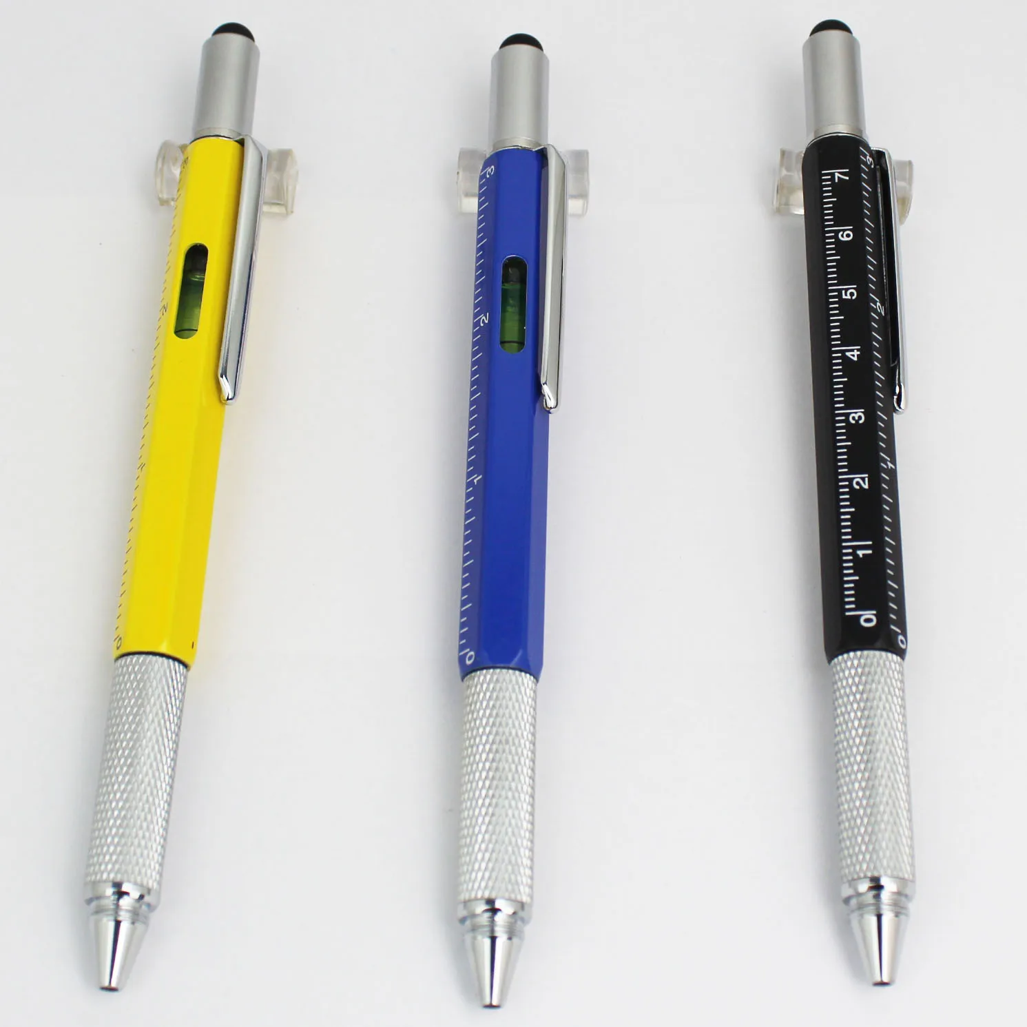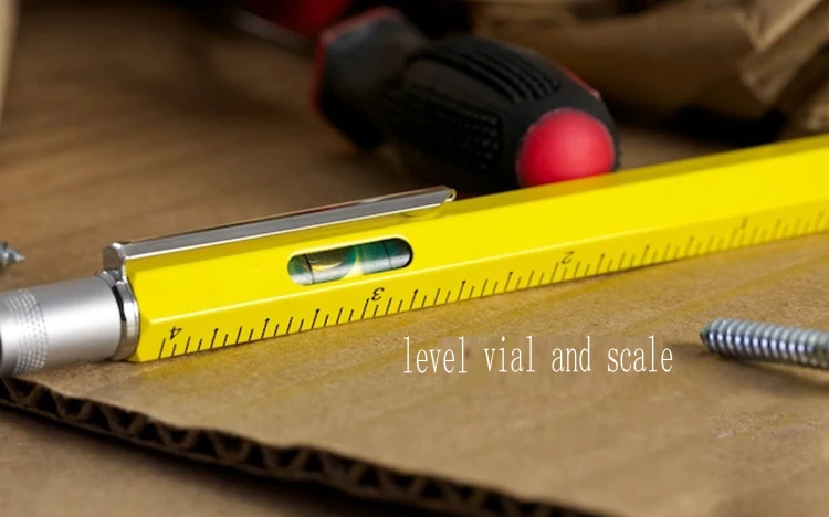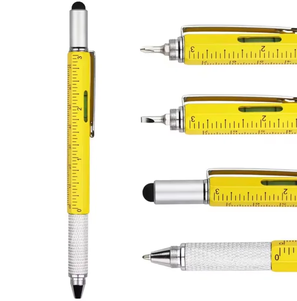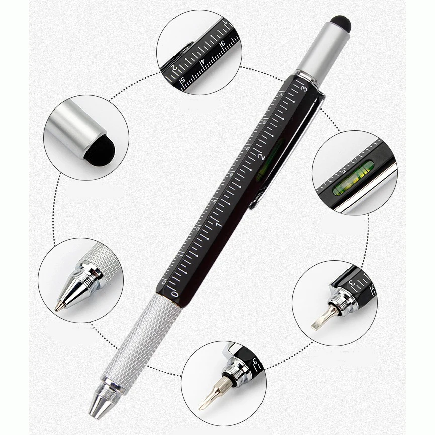 Multi Function Tool Pen High Quality Custom Logo Promotion Metal 6 in 1 Ball Pen with Stylus Spirit Level Screwdrivers Ruler