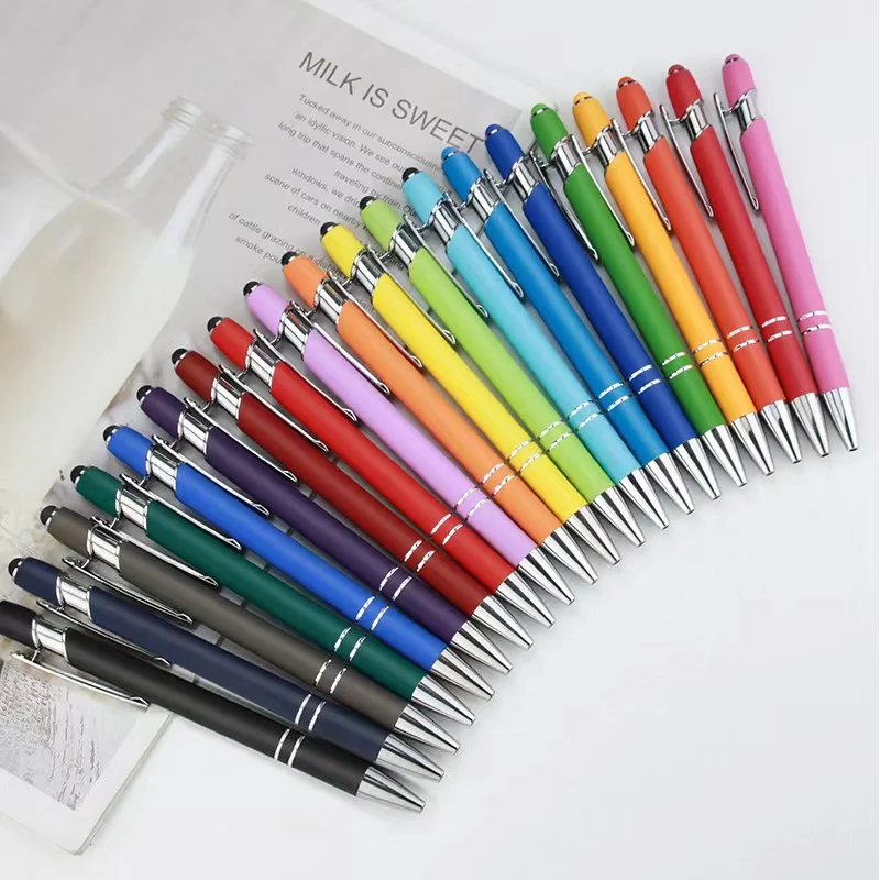 Soft Touch Good Writing Custom Logo Aluminum Ball Pen with Rubber Finished Touch Screen Pen for Phone