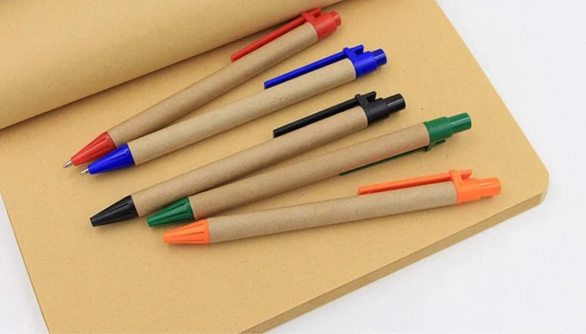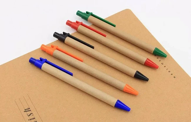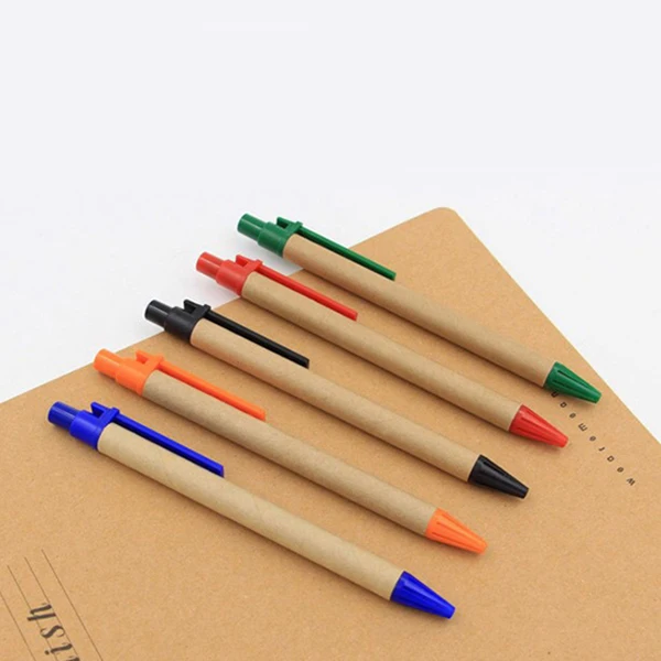 ECO Friendly Office Writing Kits Simple Creative Custom Logo Printing Promotional Cheap Kraft Recycle Paper Ballpoint Pen