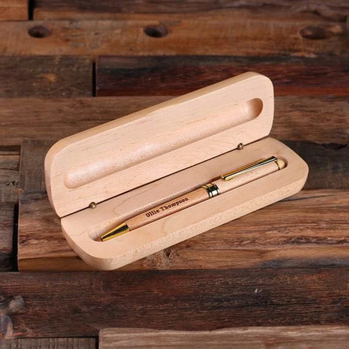 ECO Friendly High Quality Engraving Printing Custom Logo Promotional Wooden Pen Set With Wood Case