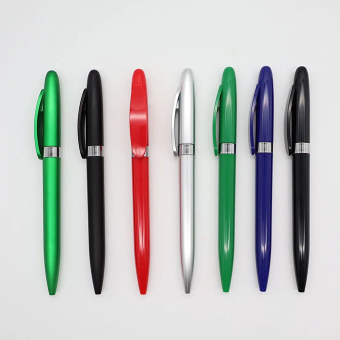 High Quality Metallic Plastic Ball Pen with Custom Logo Office Supplies Promotion Twist Plastic Ballpoint Pen 1.0 mm Width Pen