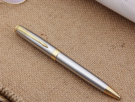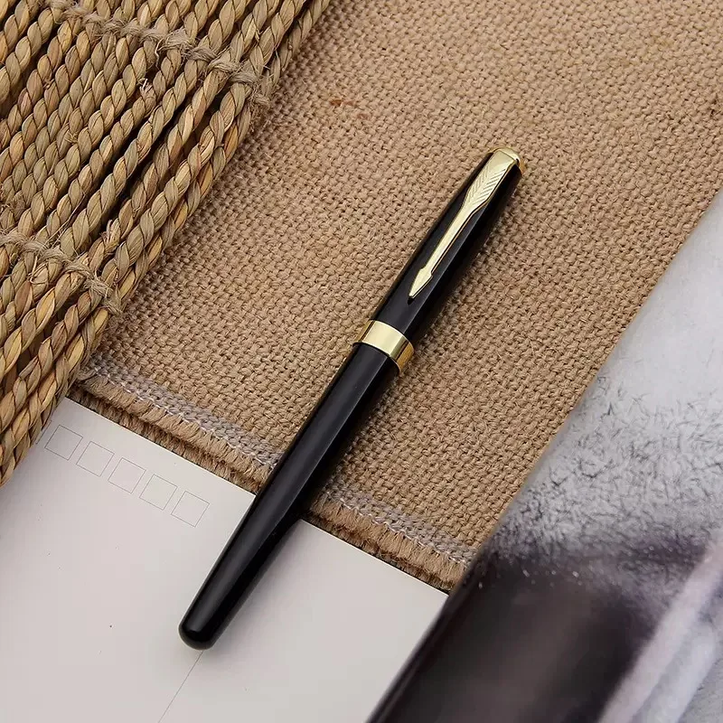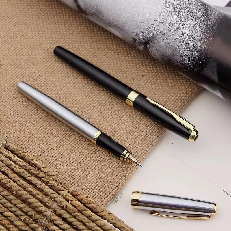 Premium Black Metal Roller Ball Pen - Black/Silver Gold Trim, Custom Logo Engraving, Office/Business/Gift Writing Instrument