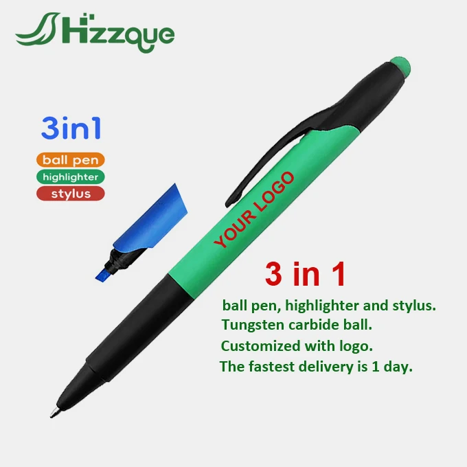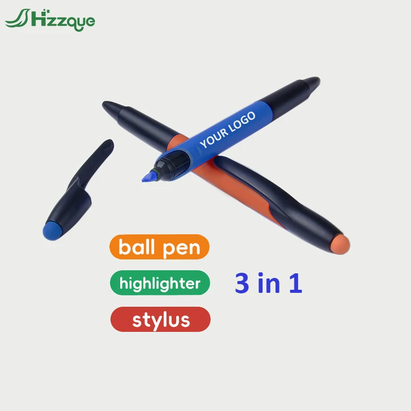 Custom Logo 3-in-1 Multifunctional Advertising Promotional Pen Plastic Ballpoint Stylus Highlighter 1.0mm Writing for Gifts
