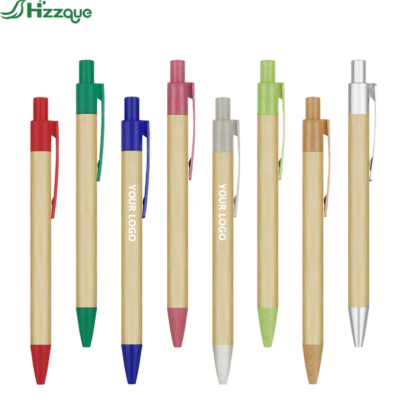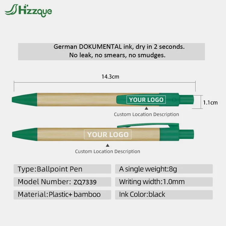 High Quality Custom Laser Logo Imprint 1.0mm Bamboo Wood and Plastic Ballpoint Pen Promotion Writing Tool