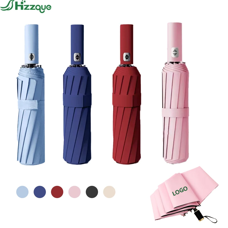 Wholesale Automatic Three-fold Glass Fiber Frame Windproof Rainproof Umbrella Dual Rib Design Custom Logo Office School Supplies