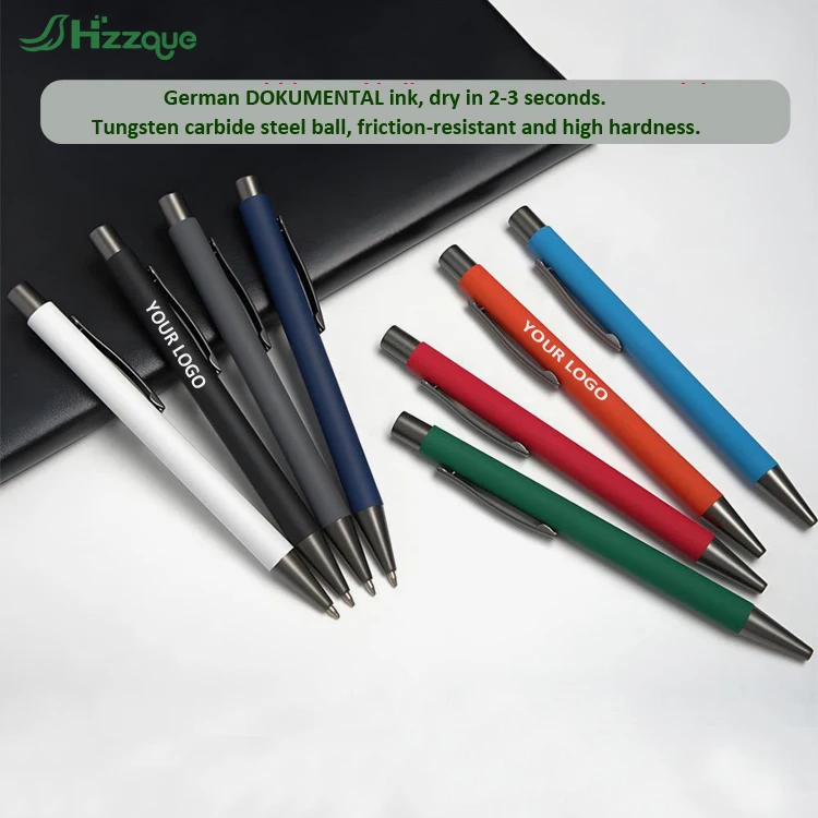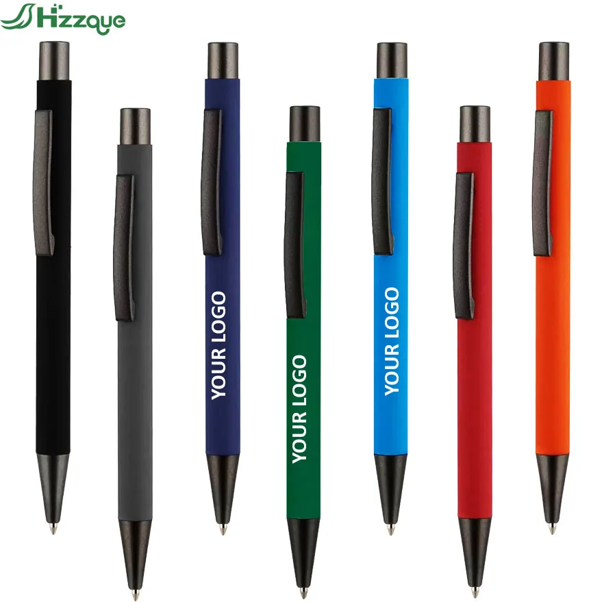 Custom Logo Laser Engraved Full Color UV Printed Ballpoint Pens Soft Rubber Coating 1.0mm Writing Width Metal Clip Black Ink