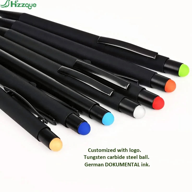Promotional Logo Printed 1.0mm Writing Width Sports Metal Ballpoint Pen Multi-Color Advertising Gift with Rubber Grip Stylus Pen