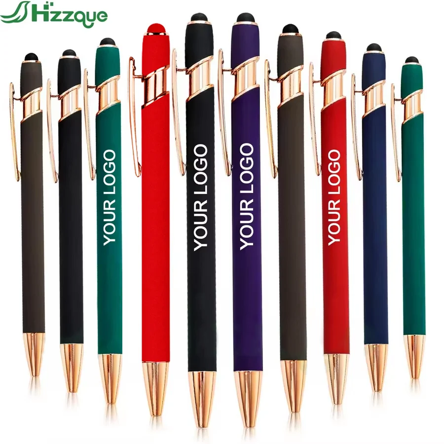 Promotional Custom Logo Rubber Ball Pen Stylus Navy Blue Rose Gold Metal Pen Black Pens Black Matt Rubber Ballpoint