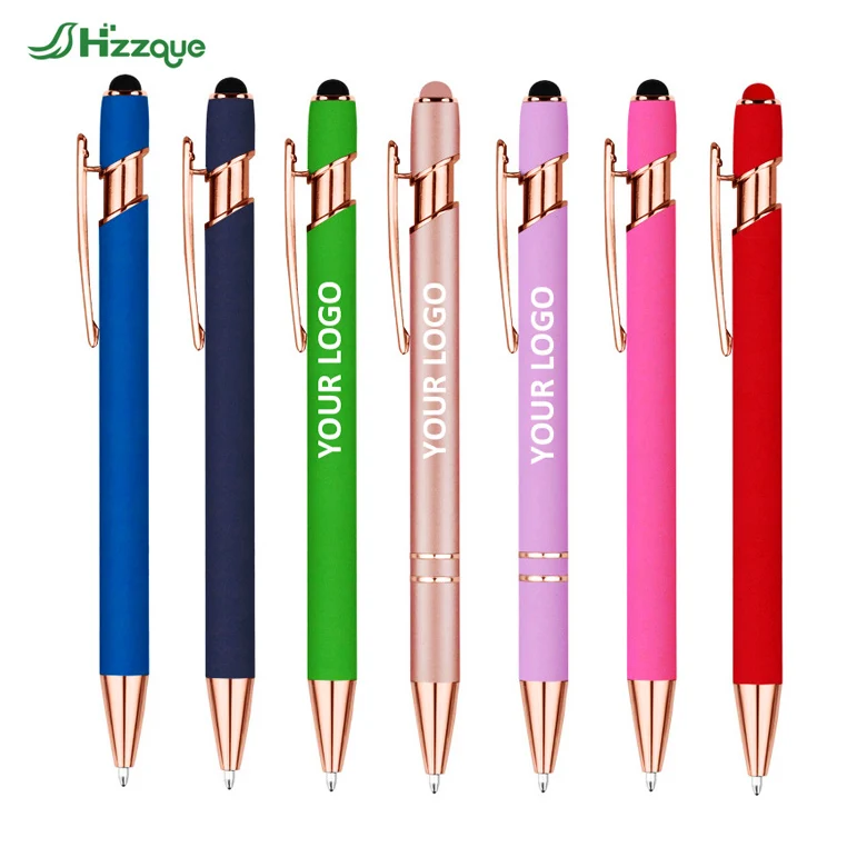 High Quality Logo Promotional Aluminum Metal Ballpoint Pens Soft Touch Screen 1.0mm Writing Width Wholesale Bulk Sports Gift