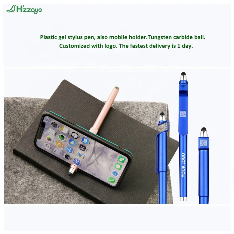 Custom Logo Multi-Function Ballpoint Gel Pen Promotional Soft Touch Screen Mobile Holder Ball Stylus 0.5mm Made Durable Plastic