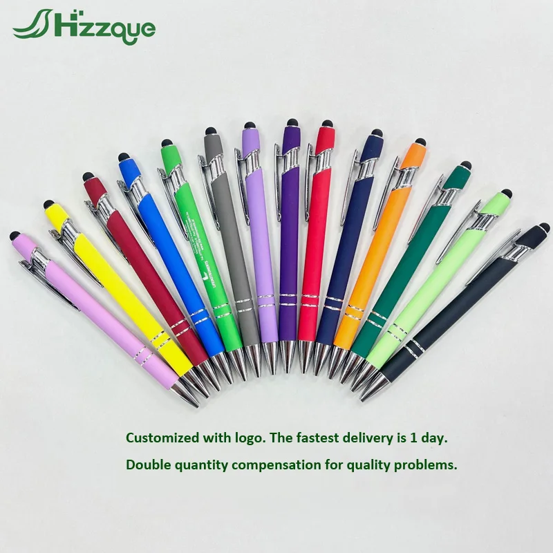 Customized logo Promotional New Multifunction Soft Rubber Touch Screen Ball Pen 2 in 1 Metal Aluminum Ballpoint Black Ink