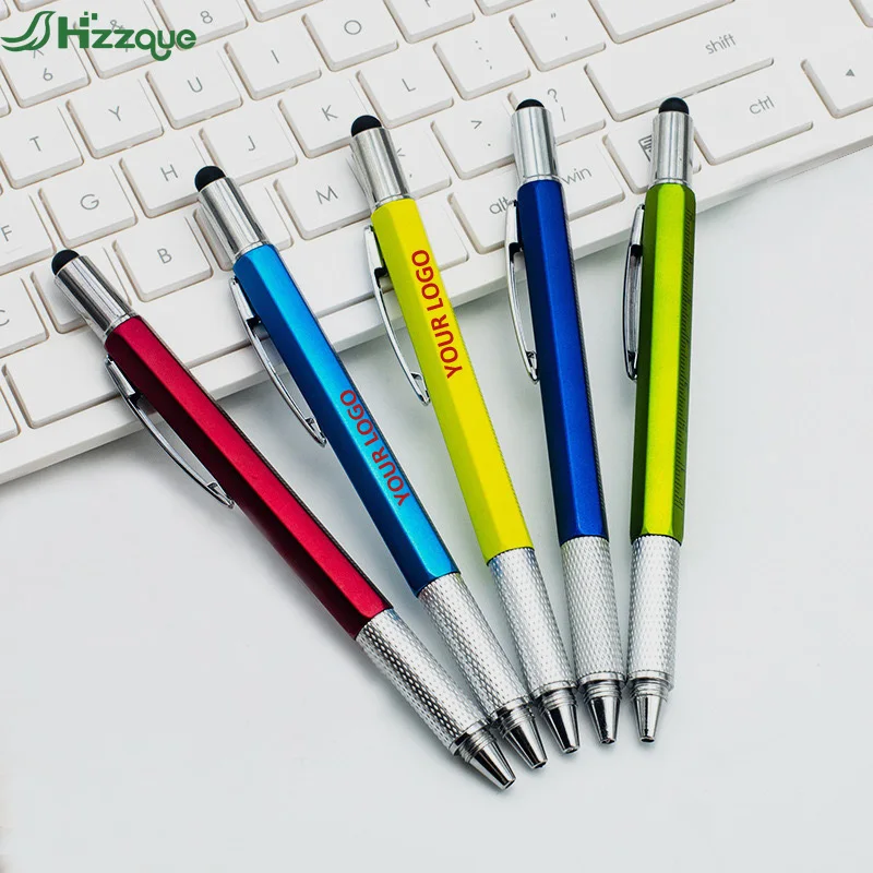 Wholesale Luxury 6-in-1 Multifunctional Plastic Ballpoint Pen Custom Logo 1.0mm Writing Orange Feather for Promotional Use Gift