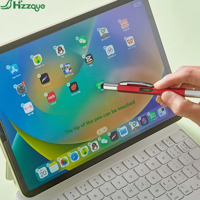 Custom Logo 6-in-1Multifunctional Office Supplies 1.0mm Plastic Ballpoint Pen with Level Gauge Screwdriver Utensils for Teaching