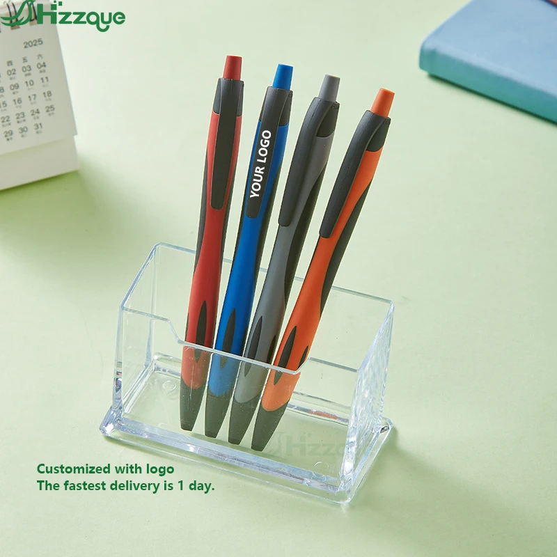 Custom Logo Promotional Gift Ballpoint Pen Black Ink Plastic Rubber Coated Replaceable Pen Core Dual-Use for Office & School