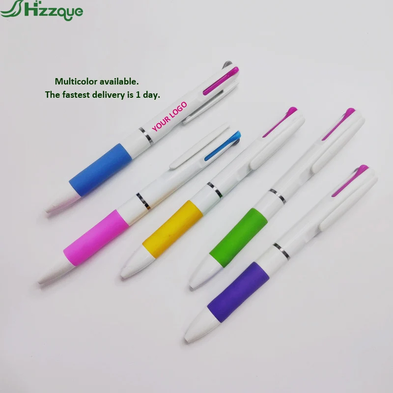 Factory Customized Logo Promotional Multi-Color Multifunctional 1.0mm Plastic Ballpoint Pen UV Printing 3 Color Sports Design