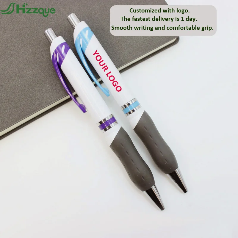 Hot Sale Custom Logo Office Writing Plastic Pen Eco-friendly Rubber Hotel Click Ballpoint 1.0mm Writing Width Branded Pen