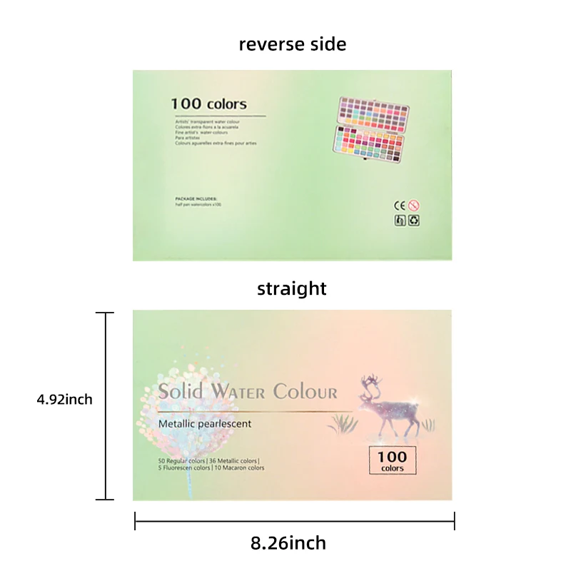 100 Colors Watercolor Paint Set Include Metallic Macaron Fluorescent, Art Supplies Kit for Artist Adult Kid Beginner with Gift B