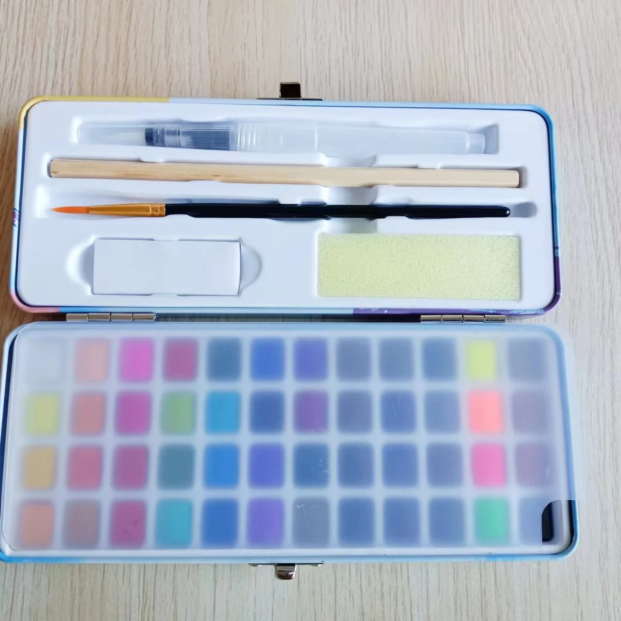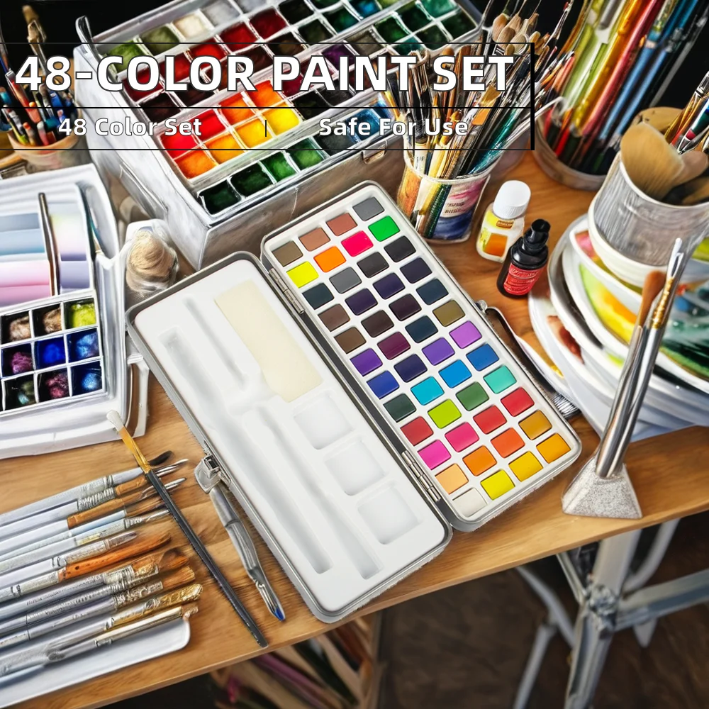48-Color Watercolor Paint Set with Water Brush Pens & Drawing Pencil Starter Kit Canvas Paper Painting 3ml Capacity