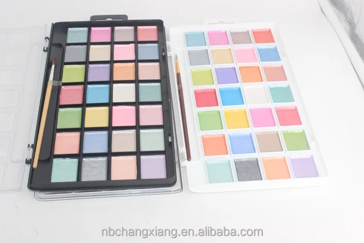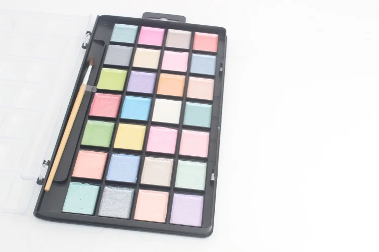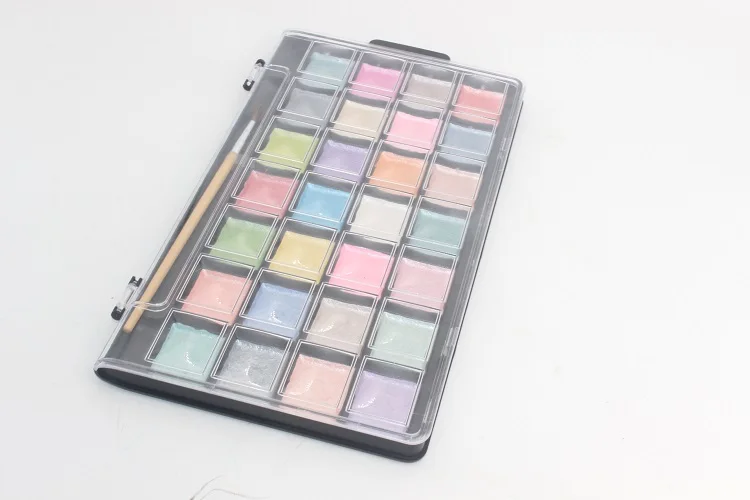 Watercolor Pan Set, Pearlescent Colors, 28 Unique Shades & Paint Brush