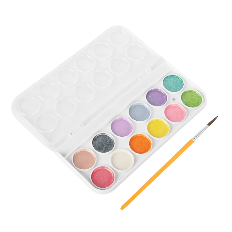 Watercolor Paint Metallic Set 12 Colors, Semi-Moist Watercolor, Idea for Beginners and Artists for School