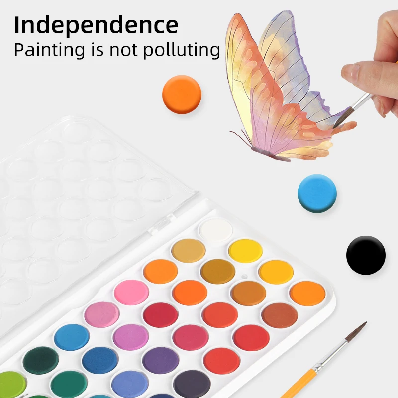 36-Color Watercolor Paint Pan Set with Brushes for Beginners Kids and Artists to Paint on Canvas and Paper or School