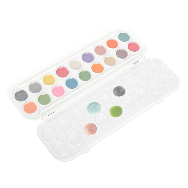 Artist Metallic Watercolor Paint Set of 18 Semi-Moist Whole Pan Vibrant Shimmering Glitter Colors, 2 Paint Brush