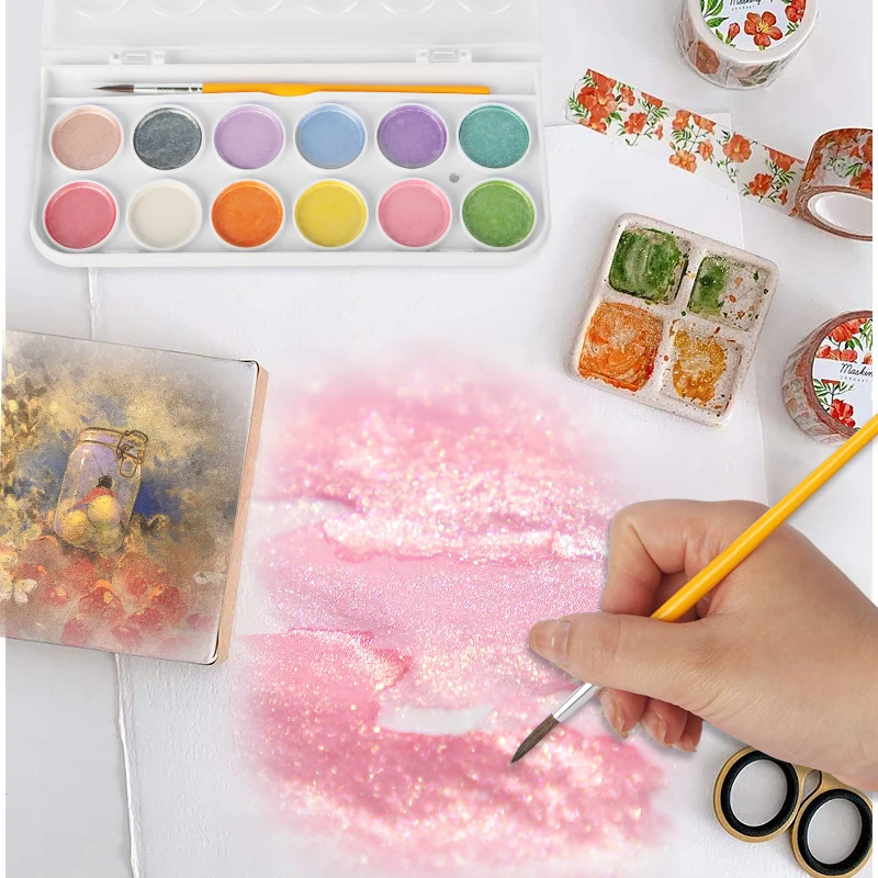 professional watercolor paint nontoxic 12colors watercolor paint with water brush for artis Non-Toxic Water Brush