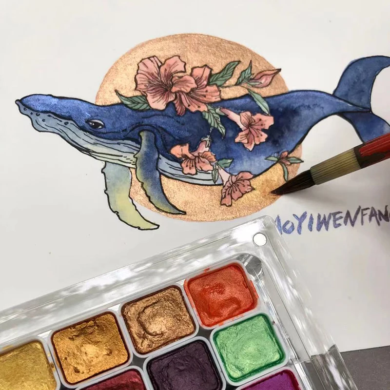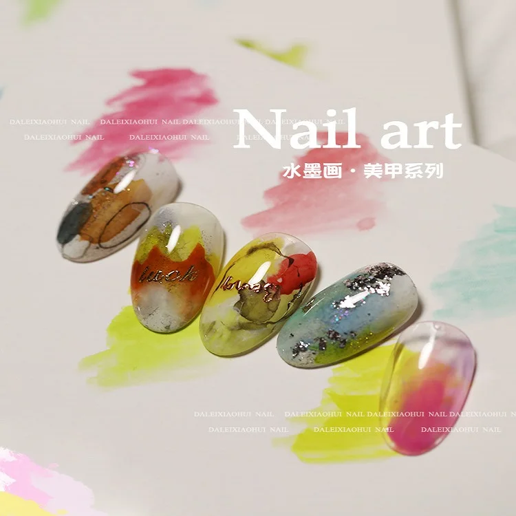6colors New Nail Art Watercolor Solid Pearlescent Pigment Japanese Gold Powder Smudge Painting Special Set