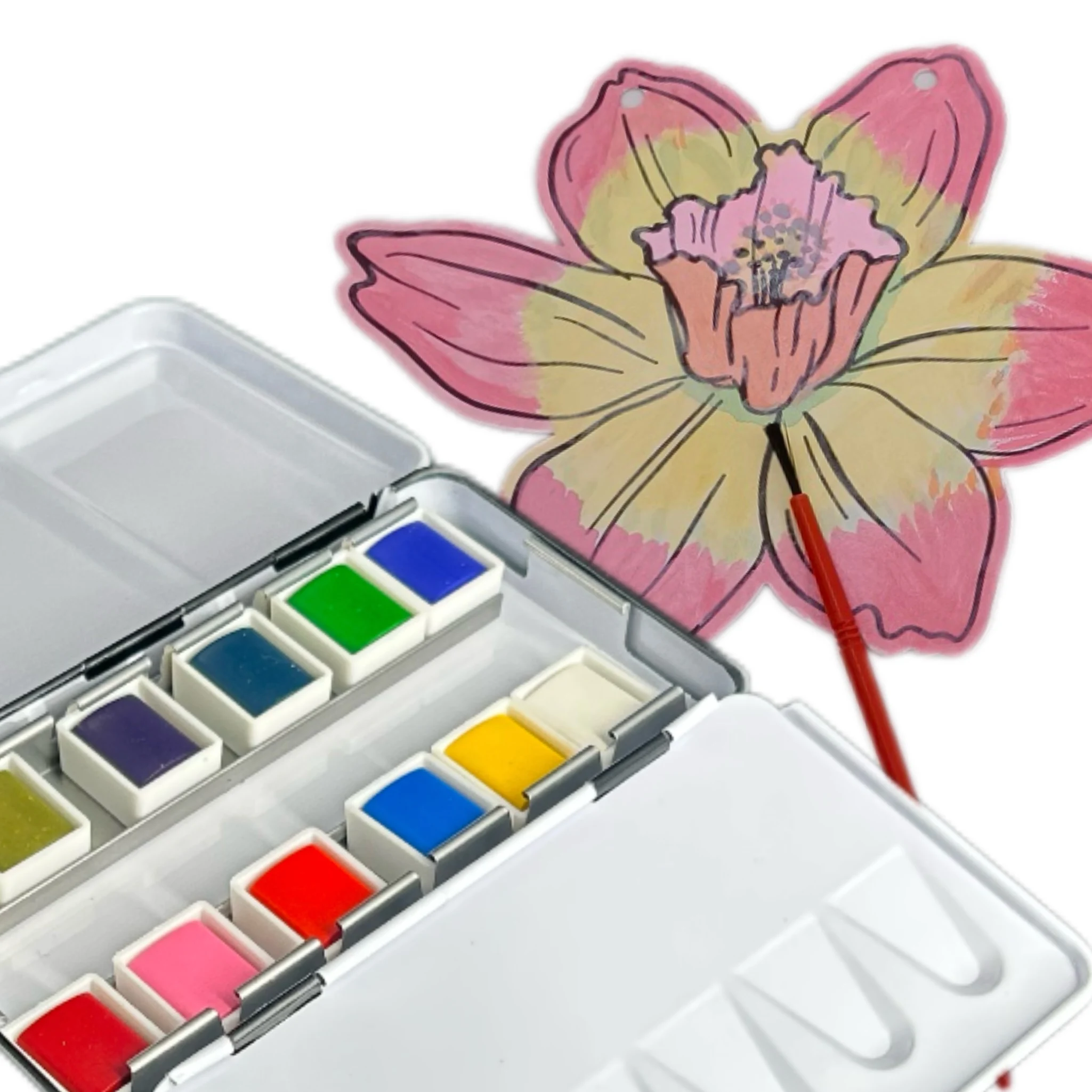 New Launched Eco-friendly Non-Toxic High Quality 12 Colors Watercolor Paint Metal Box for Kids Students