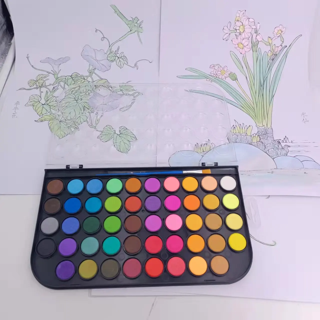 Washable Non-toxic Solid Children's Watercolor Paint Brush Set Kids 48 Pack Watercolor Kits Drawing Painting