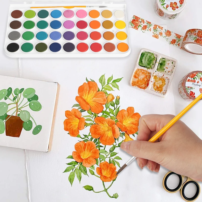 36-Color Solid Watercolor Paint Pan Set with Brush Portable Drawing Paint Set for Kids