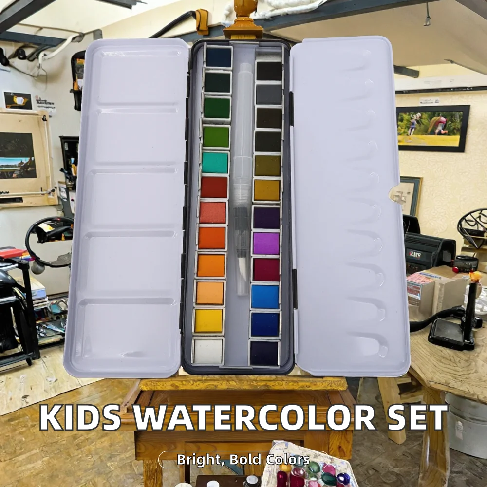 Superior Solid Watercolor Paint for Kids Set 24 Pcs Paper 3ml Metal Painting Box