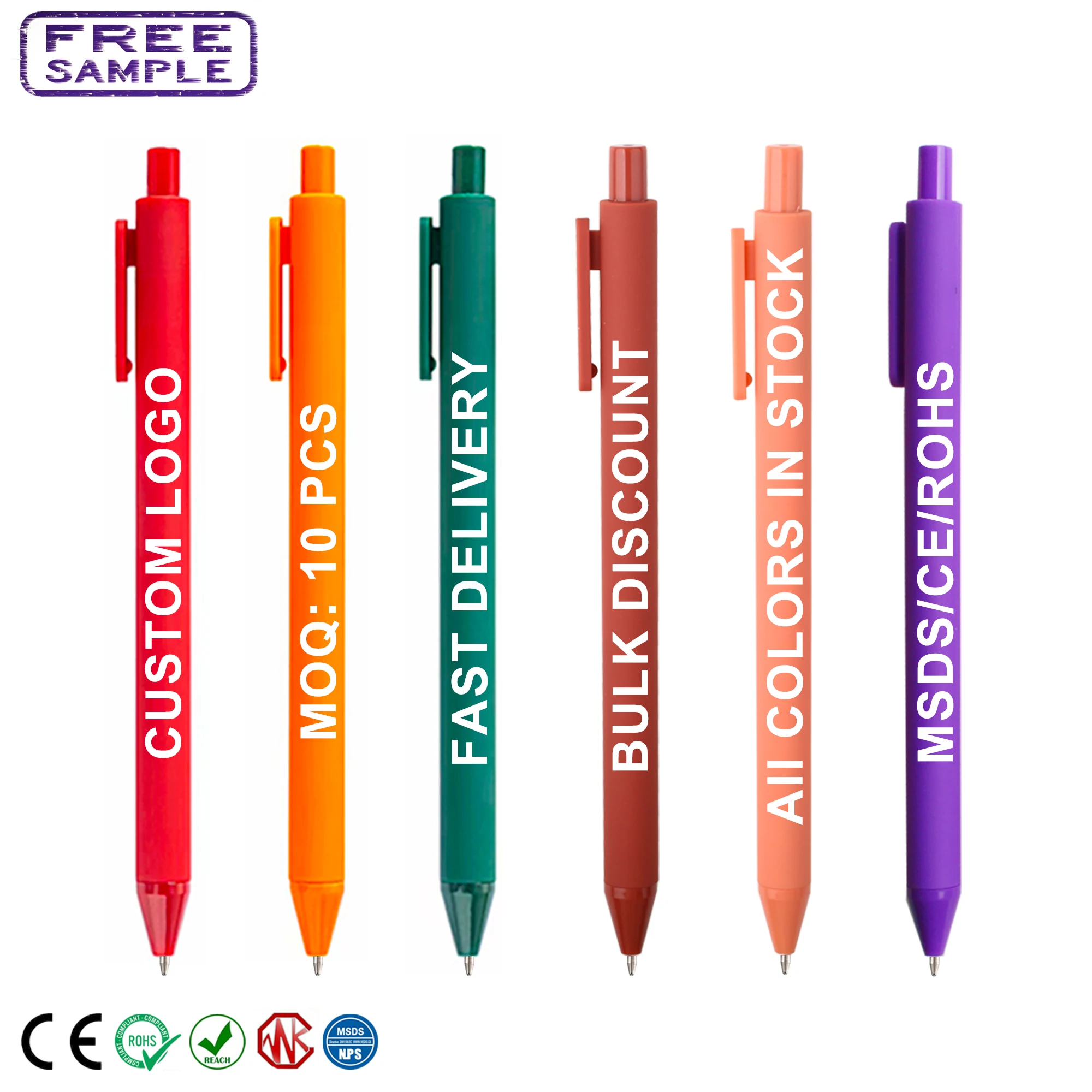 Custom LOGO Multicolor Macaron Silica Ballpoint Pen Promotional High Quality Retractable Advertising Printing for Stationery