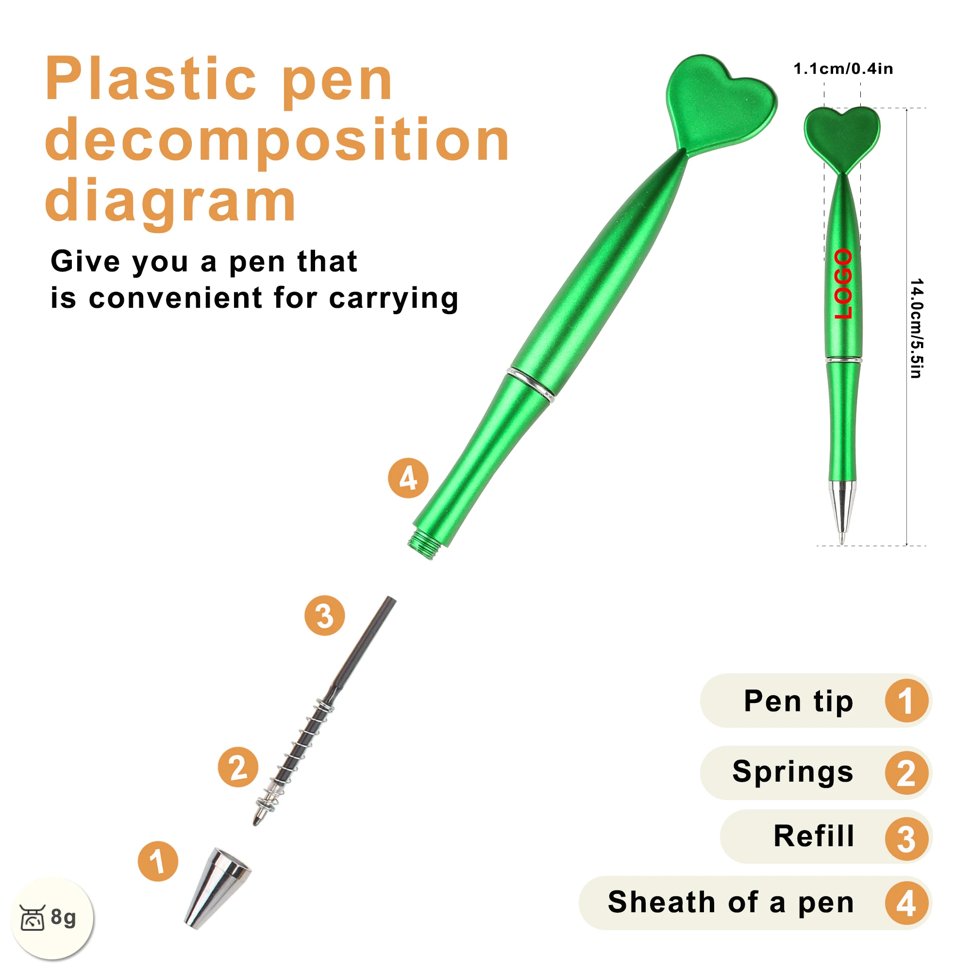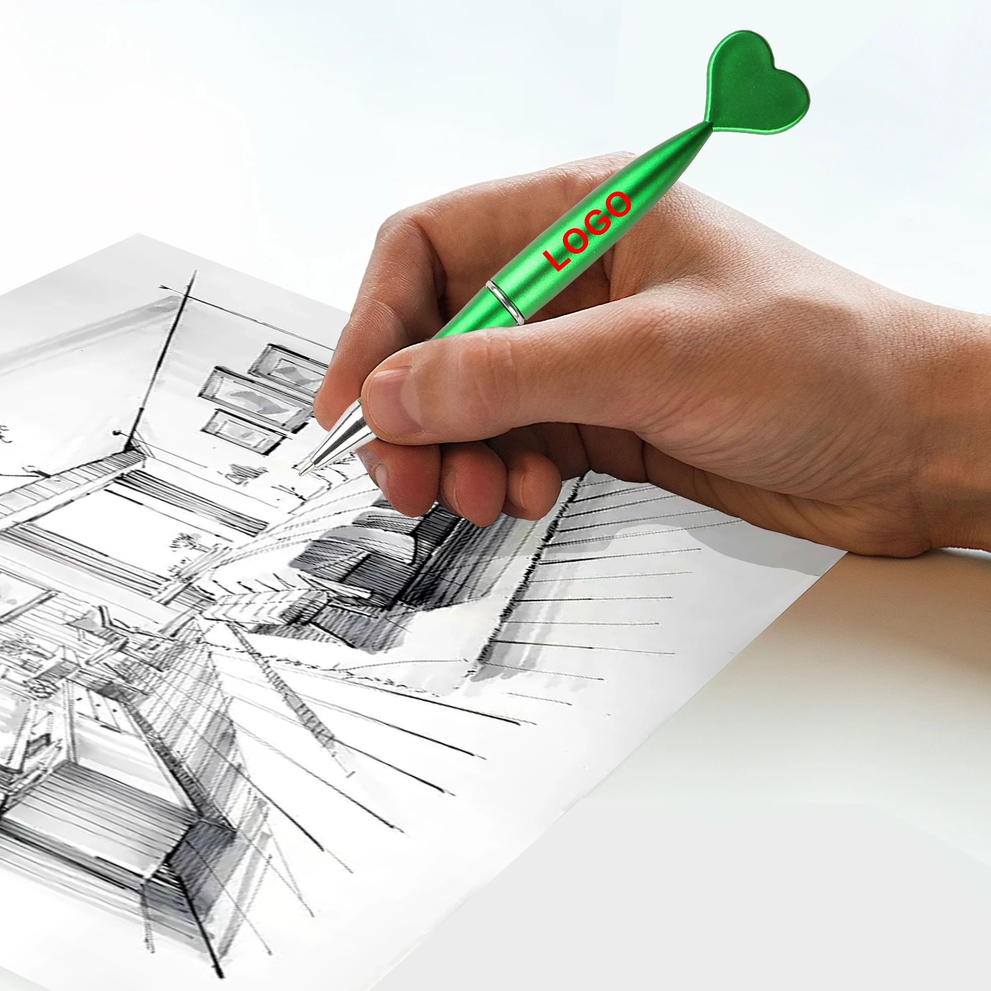 Novelty New Brand Promotional Fashion Plastic Ballpoint Pen with Printed Logo Heart Shape on the Top for Christmas Gifts