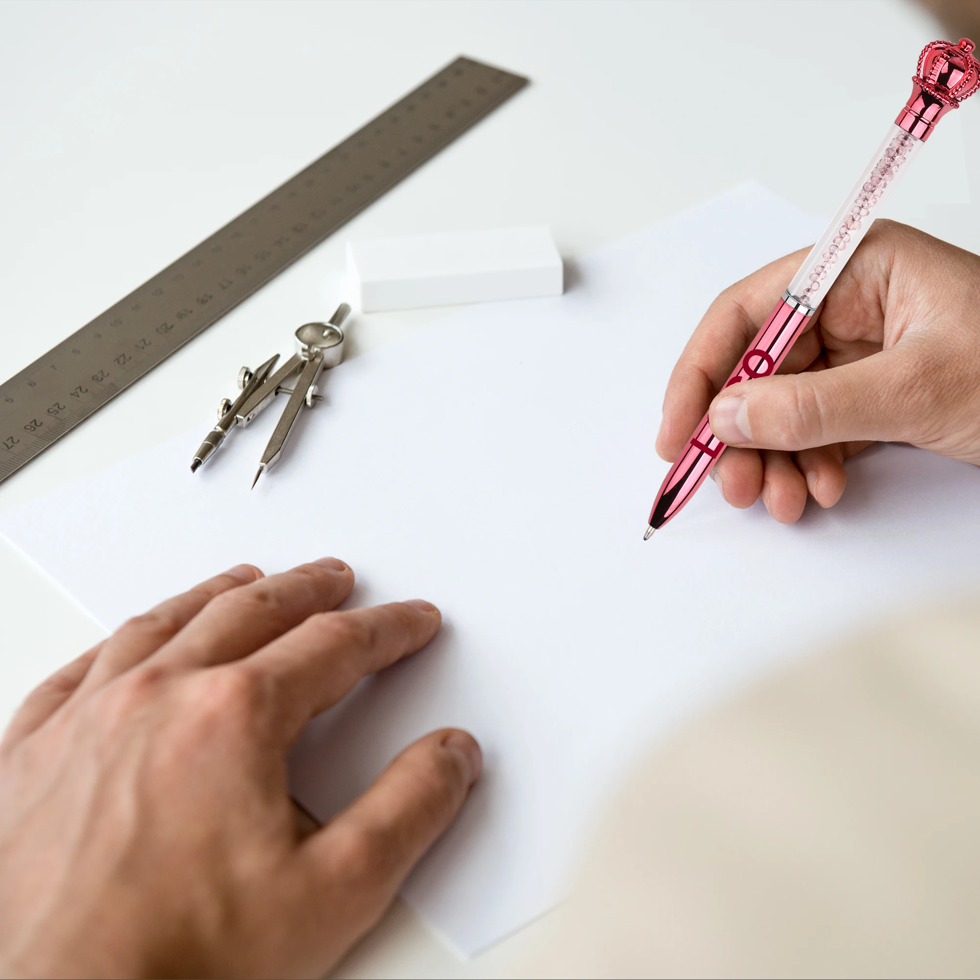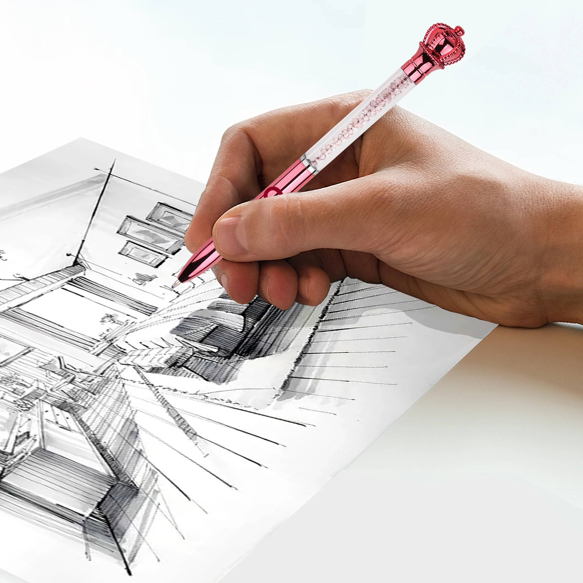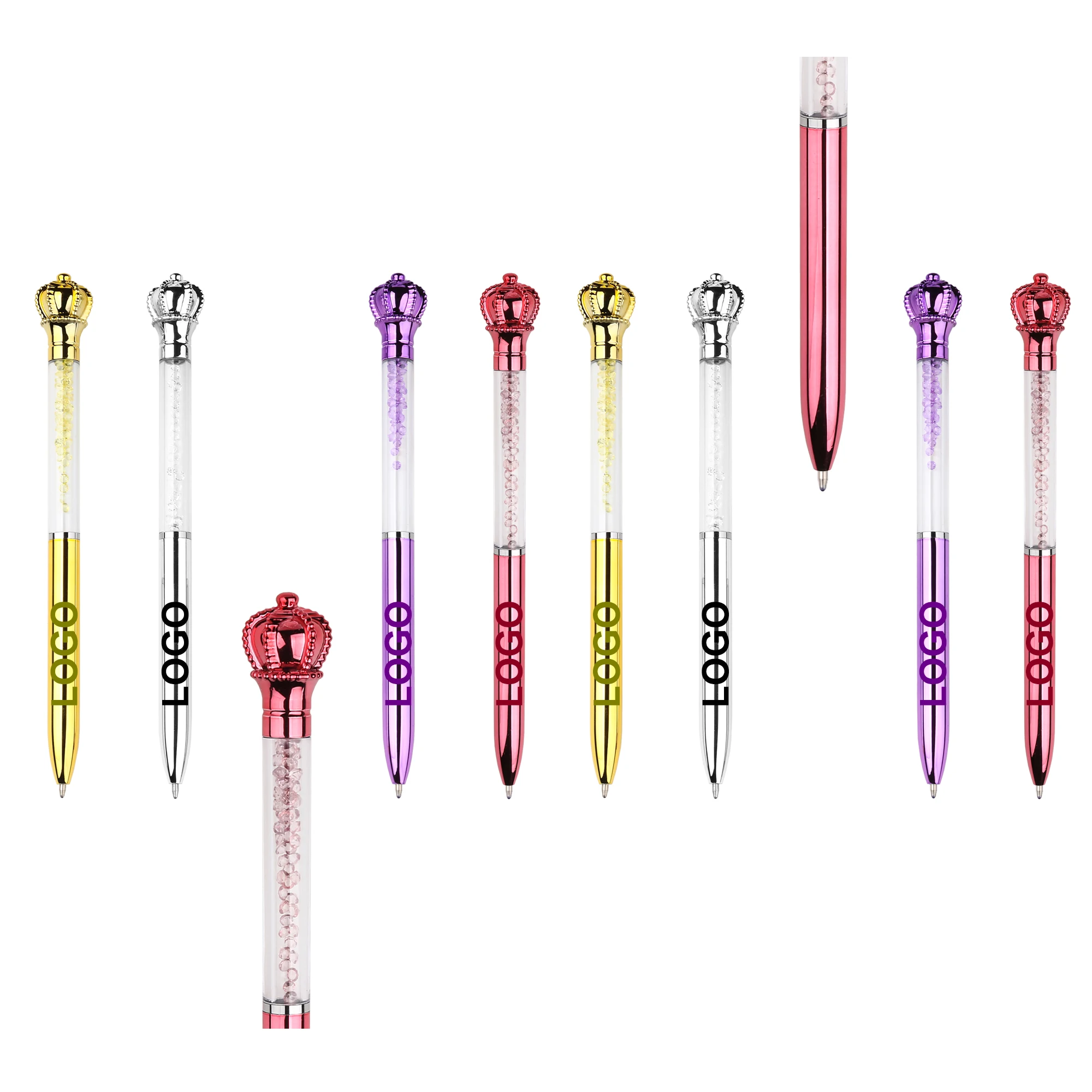 Wholesale Beautiful Design Custom Brand Plastic Ball Pen With Print Logo Big Diamond Decoration Smooth Writing for School Gifts