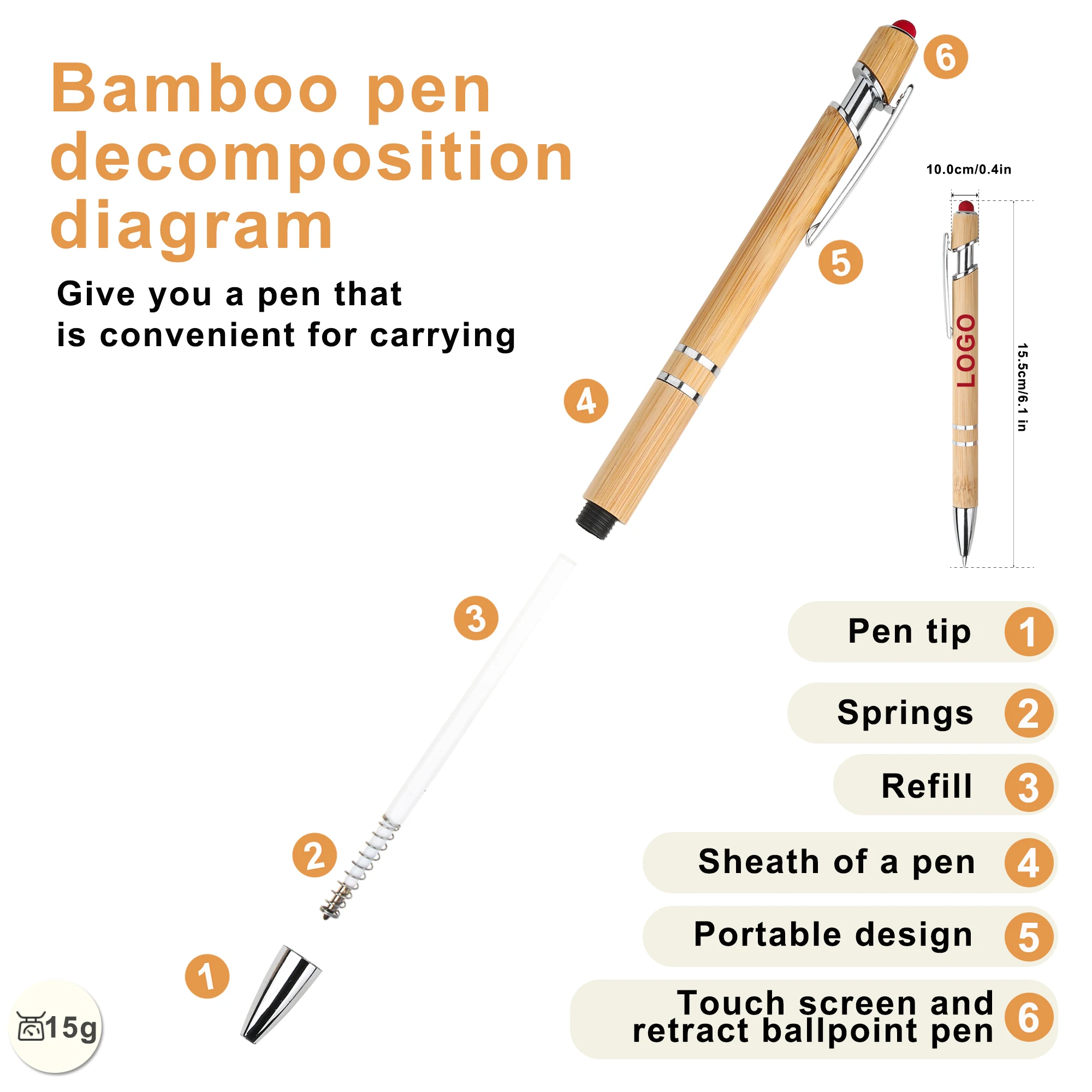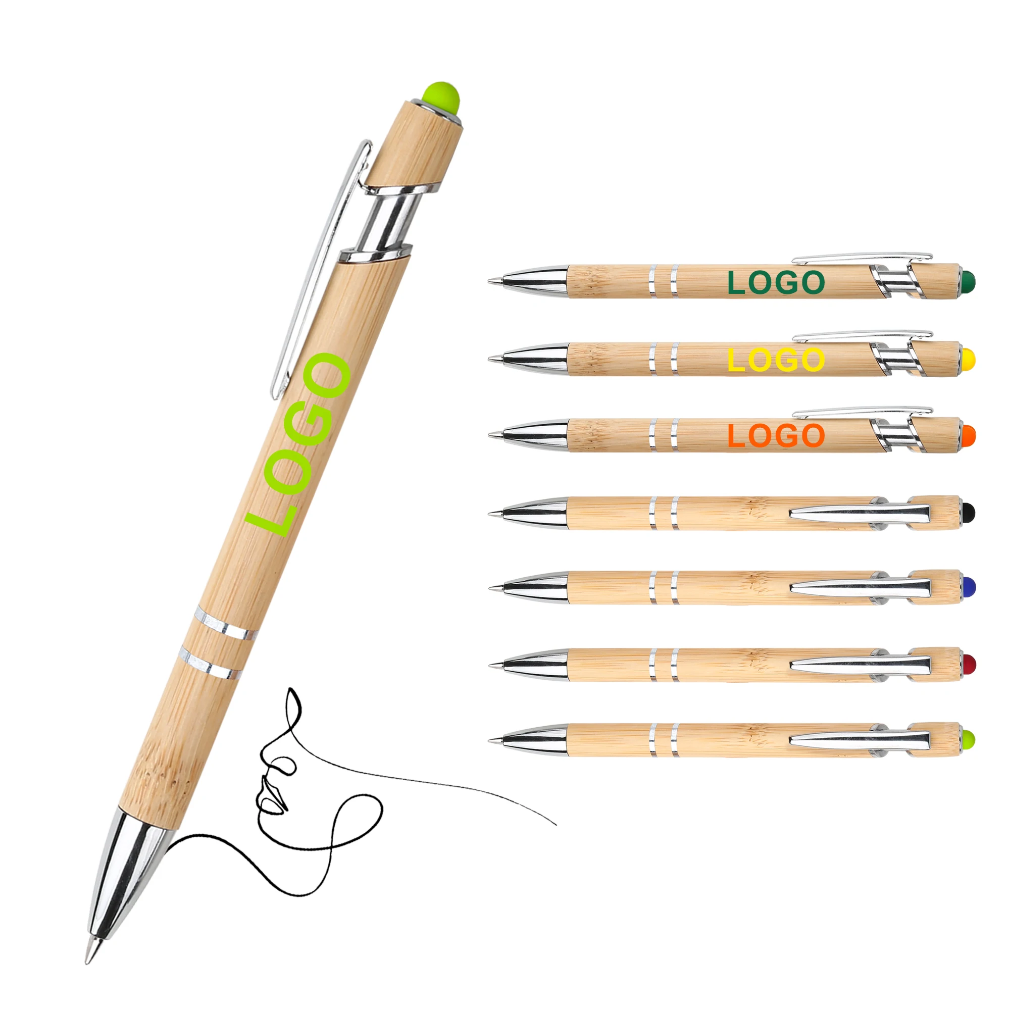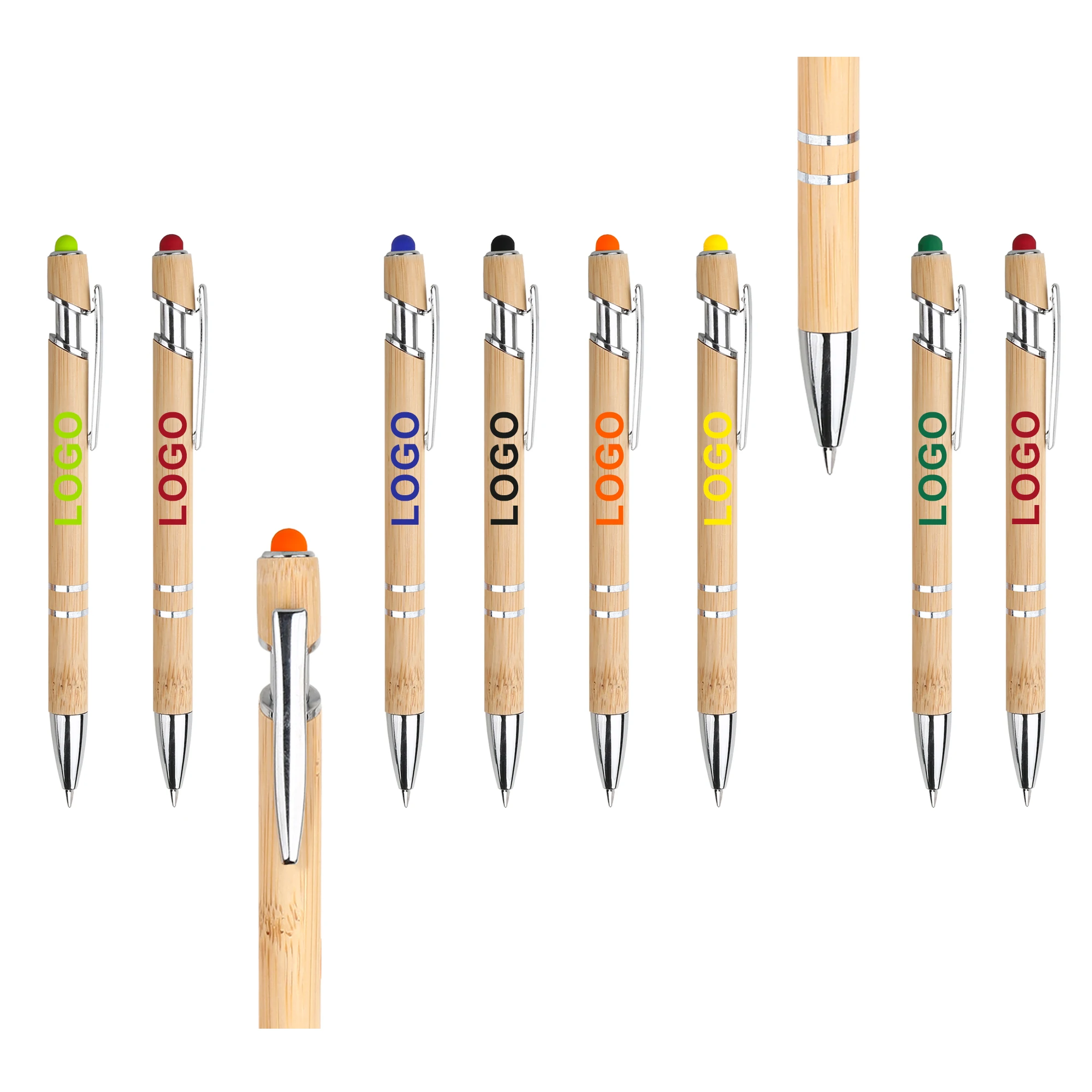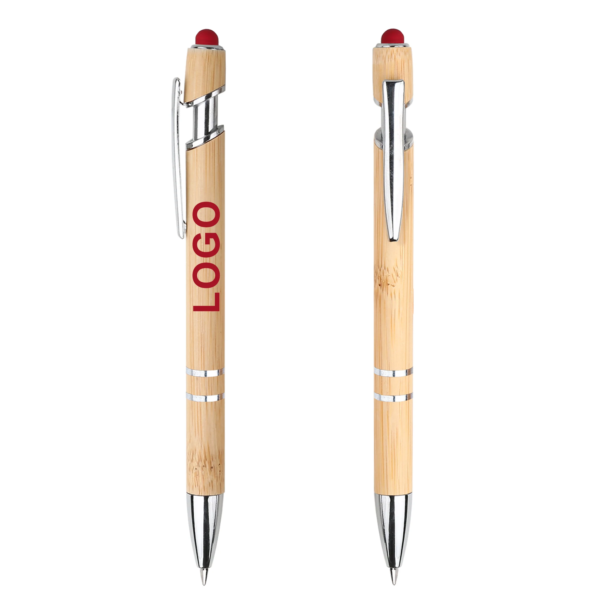Wholesale Personalized 2 in 1 Multi-Color Touch Head Press Bamboo Pens with Custom Logo Print Eco Friendly Stylus Screen Phone