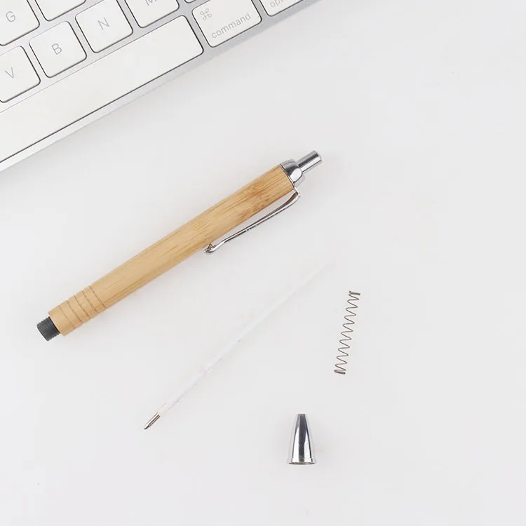 Selling Press Bamboo Ballpoint Pen Promotional Customized Personal Logo Printed for Office Stationery Ball Pens