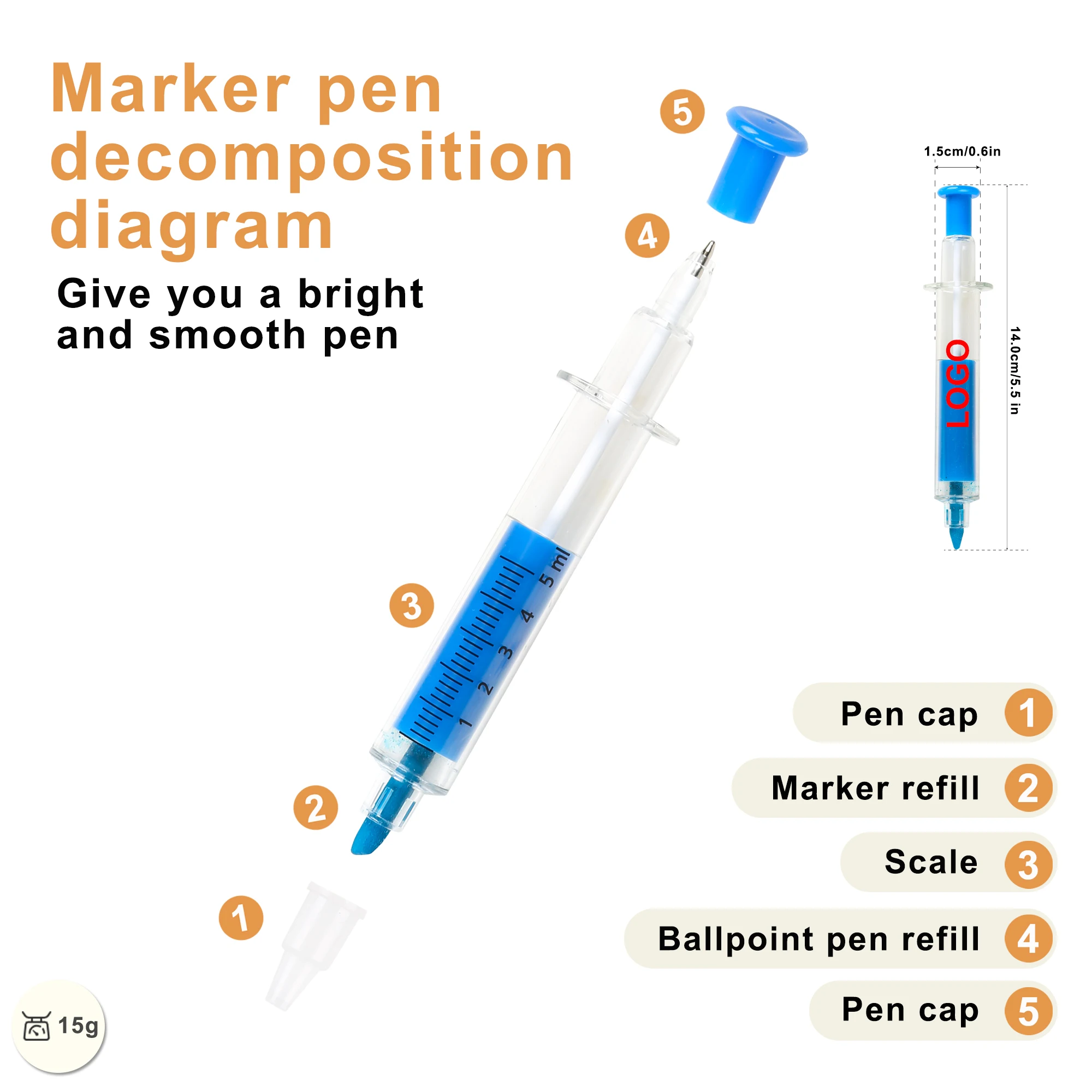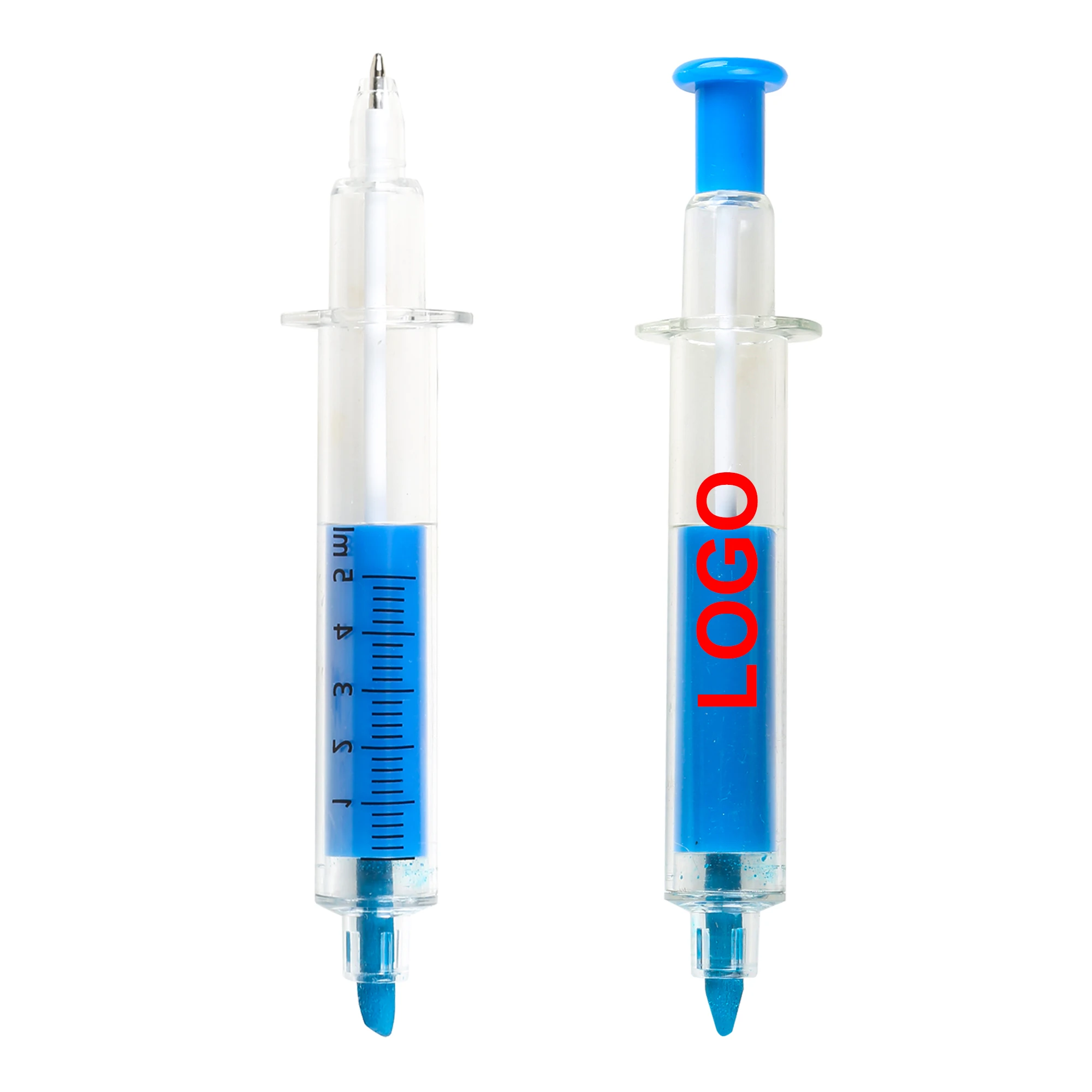 Promotional Novelty 2-1 Syringe Highlighter Ballpoint Pen with Multi-color Plastic Customized Personal Logo Print for Kids Gifts