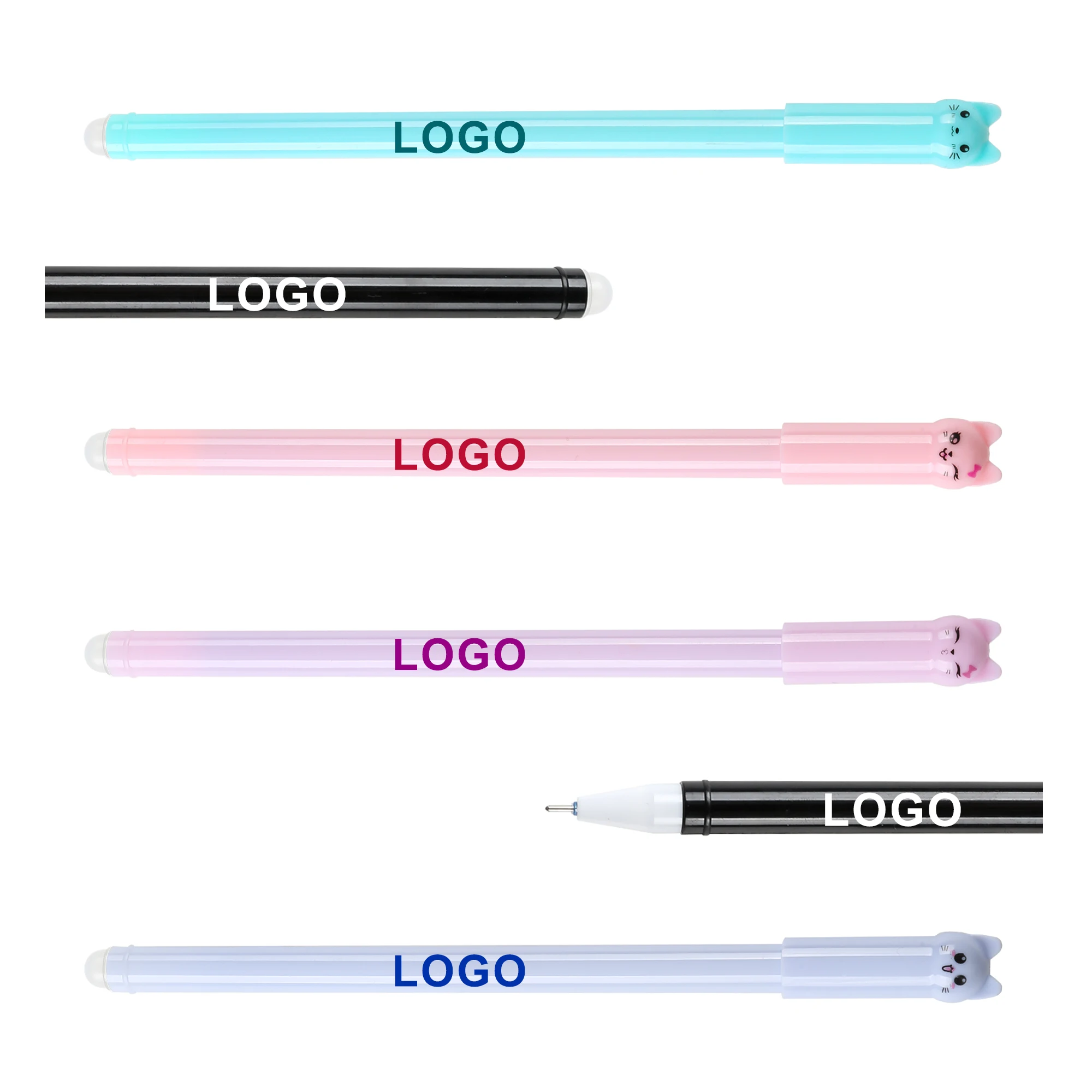 Manufactures Plastic Cute Cartoon Creative Cat-Tail Erasable Gel Pen Cheap Custom Logo Print for Office Water-Based Signature