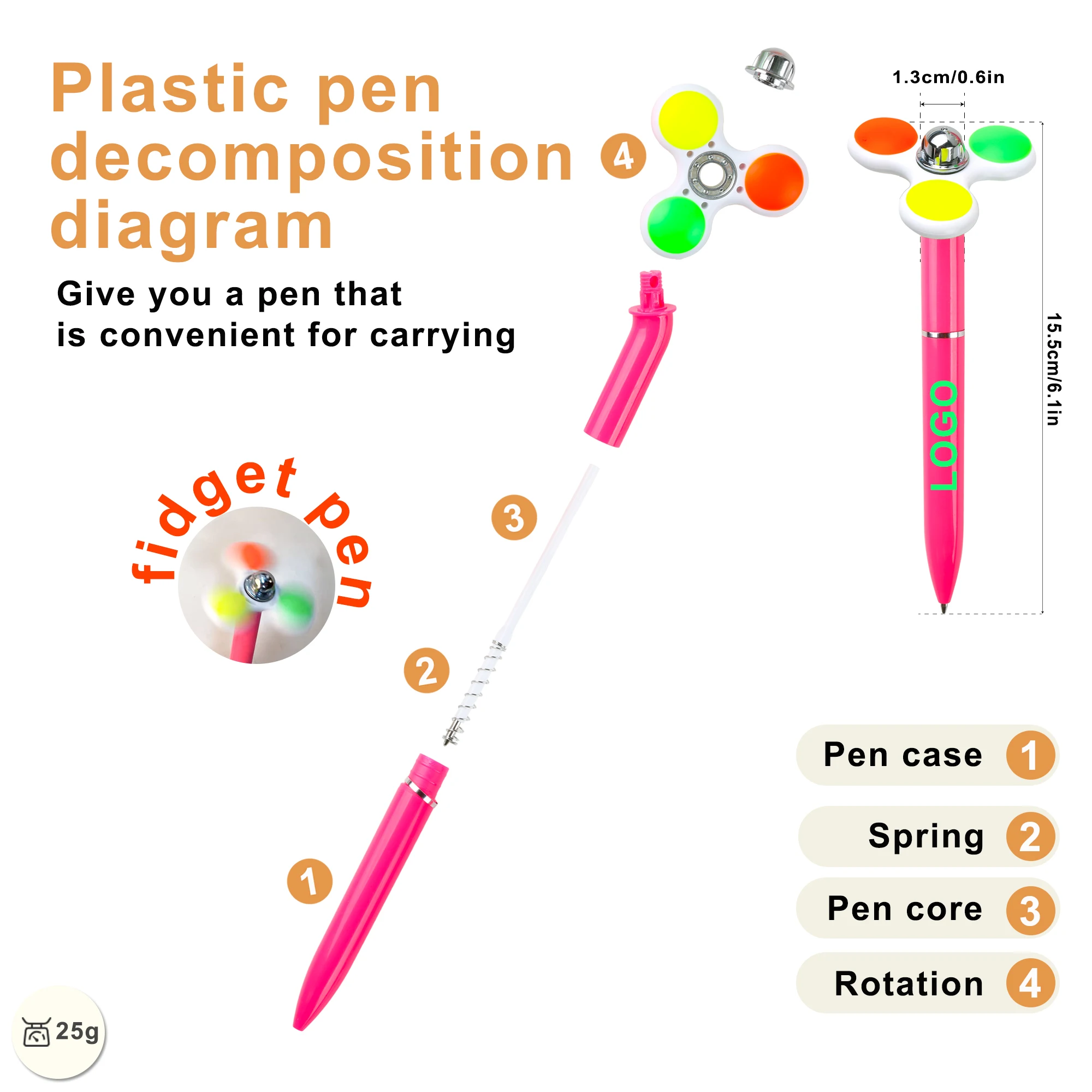Selling Decompression Novelty Promotional Advertising Fidget Spinner Fancy ABS Plastic Pen with Custom Logo Printing Ballpoint