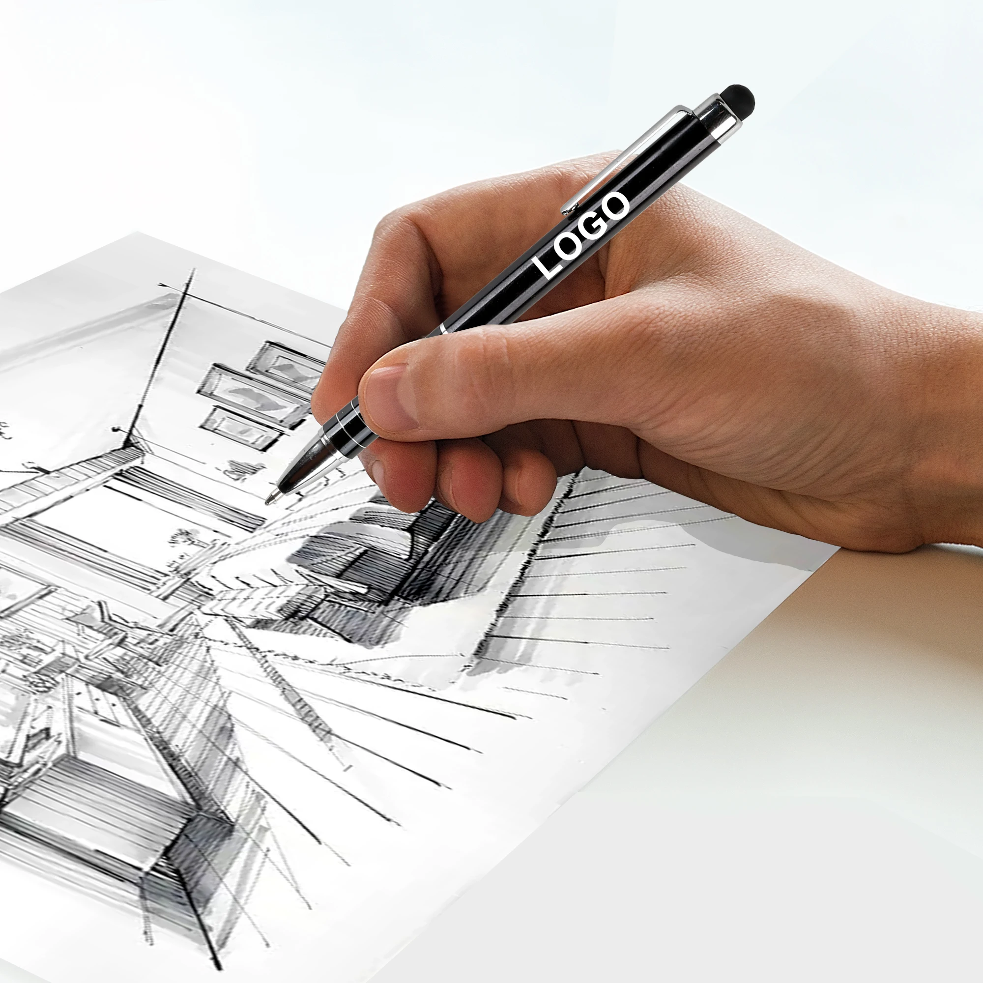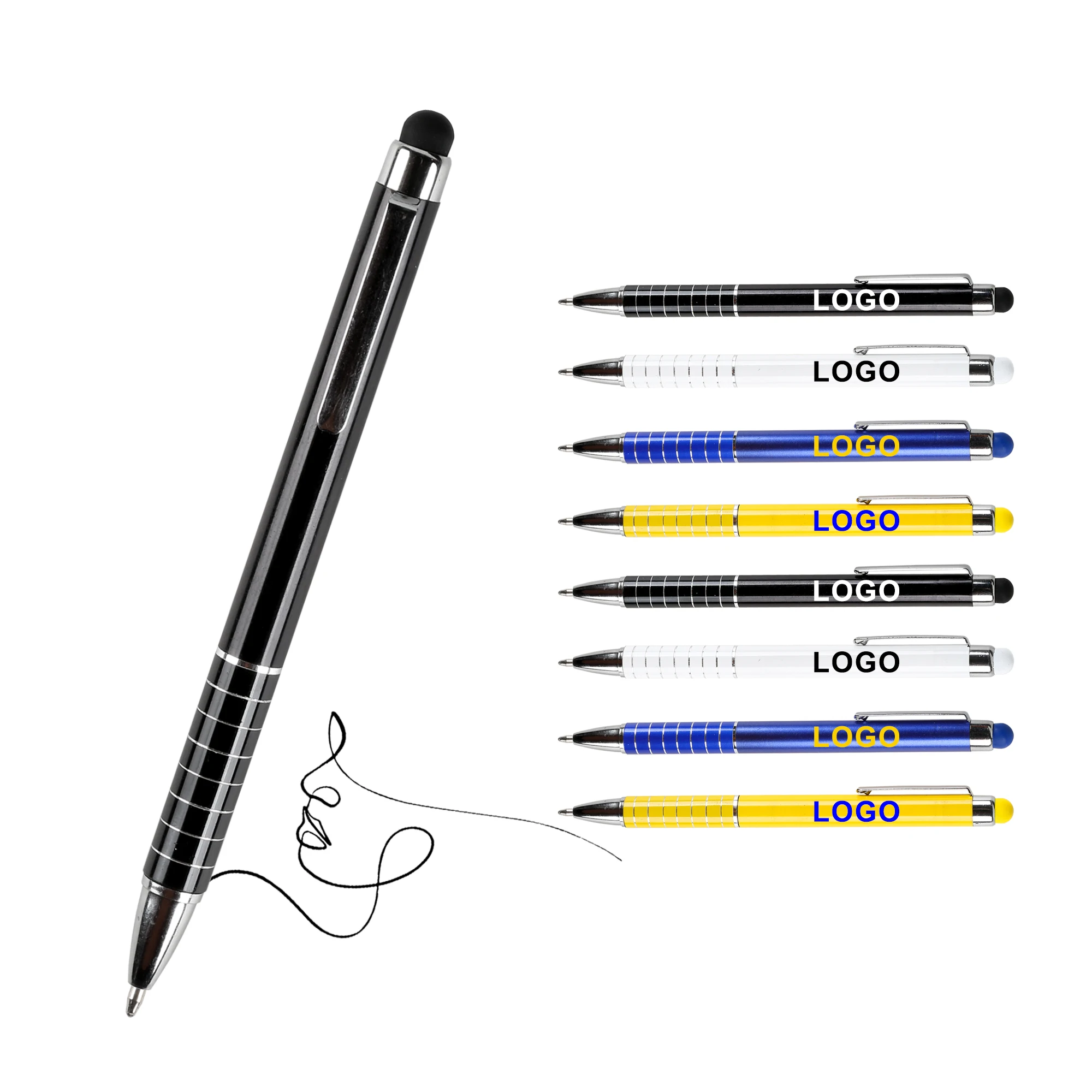 Promotional Plastic Ballpoint Pen With 2-1 Stylus Screen Touch Custom Logo Printing Brand Manufacturers Ball Pens Stationery